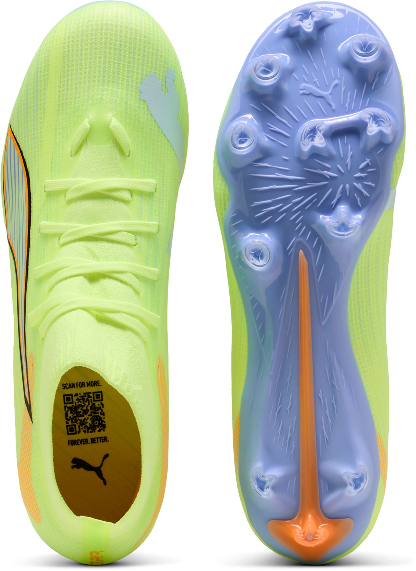 Fasten your seatbelt. Perfect for up-and-coming speed merchants, this version of ULTRA comes with PUMA’s brand-new SPEEDSYSTEM outsole and FastTrax stud design for explosive traction. Three rounded studs on the lateral side let you switch between firm ground and artificial grass. Wherever you play, play at full throttle.