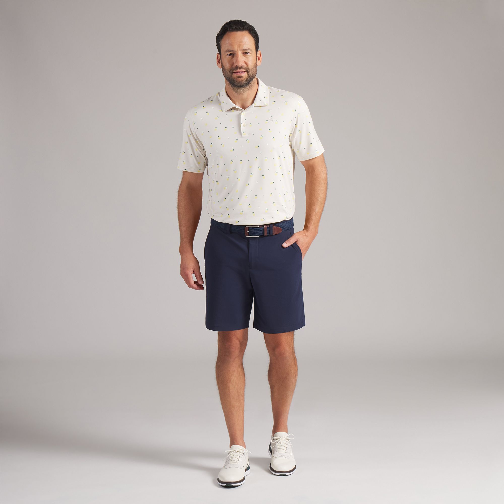 Heritage style with a fresh squeeze. Inspired by Arnold Palmer’s timeless taste, this CLOUDSPUN polo pairs buttery-soft comfort with a polished lemon motif that nods to his signature drink. Lightweight stretch, moisture-wicking ease, and UPF coverage keep you sharp from first tee to clubhouse. Crafted with 90% recycled material.
