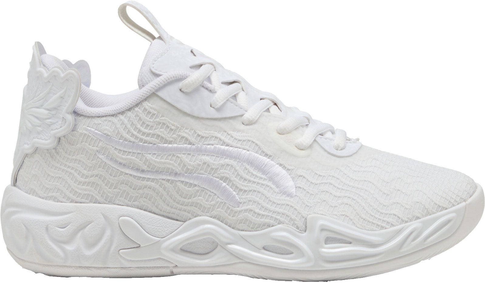 LaMelo Ball is not of this Earth - but fortunately he comes in peace. Inspired by Melo's otherworldly style of play, The MB.04's unique design is wrapped in alien tentacles with Melo phrases hidden throughout. With a supportive double-layered mesh upper and NITROFOAM™ cushioning for on-court power, the MB.04 has it all. Reflections features a black upper covered in reflective details with a custom 'disco Melo' emoji at the heel.