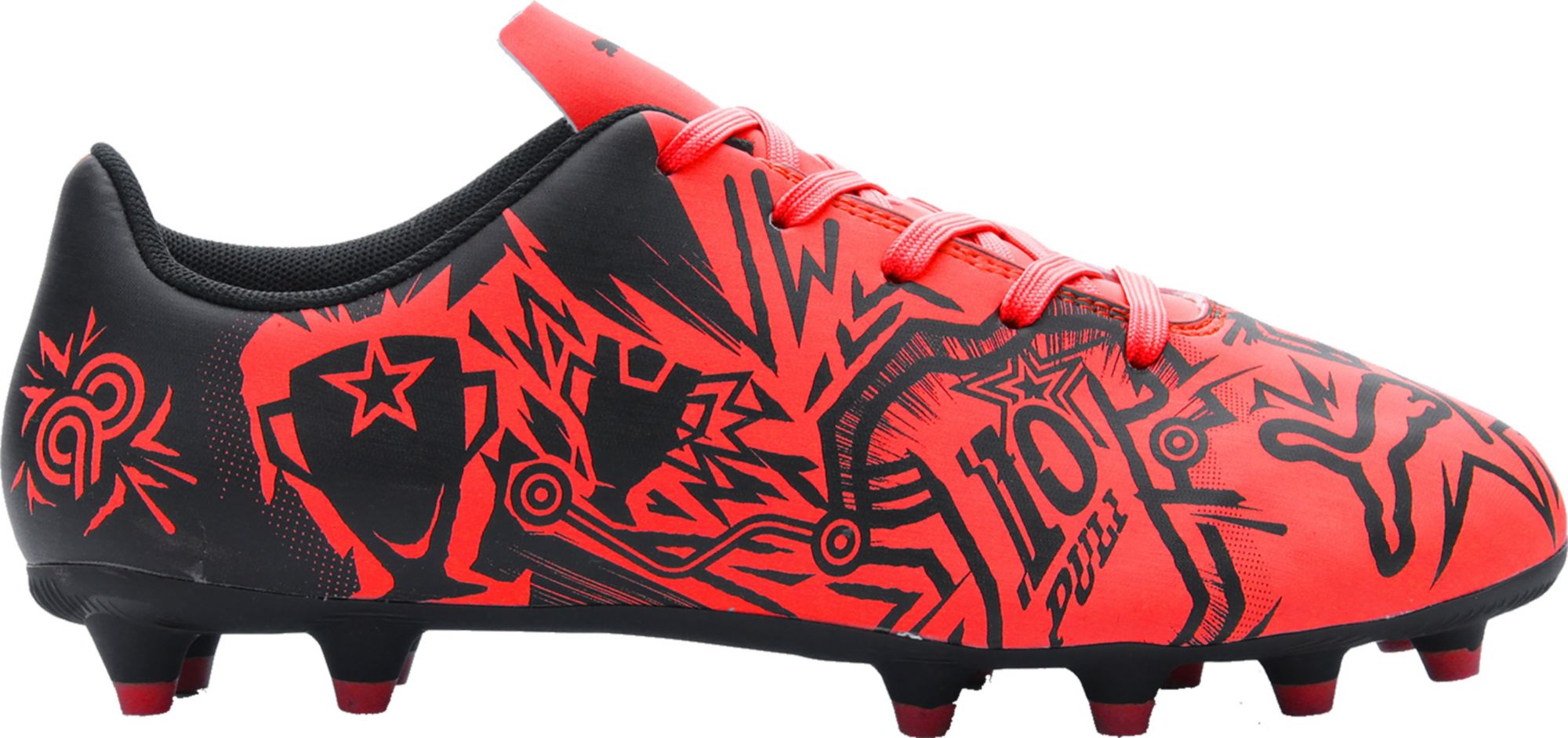 Bought these for my six-year-old for soccer. True to size. (He wears a size 12 in Nike, and these Pumas were also a size 12.) He says they are comfortable. Laces actually stay tied!
