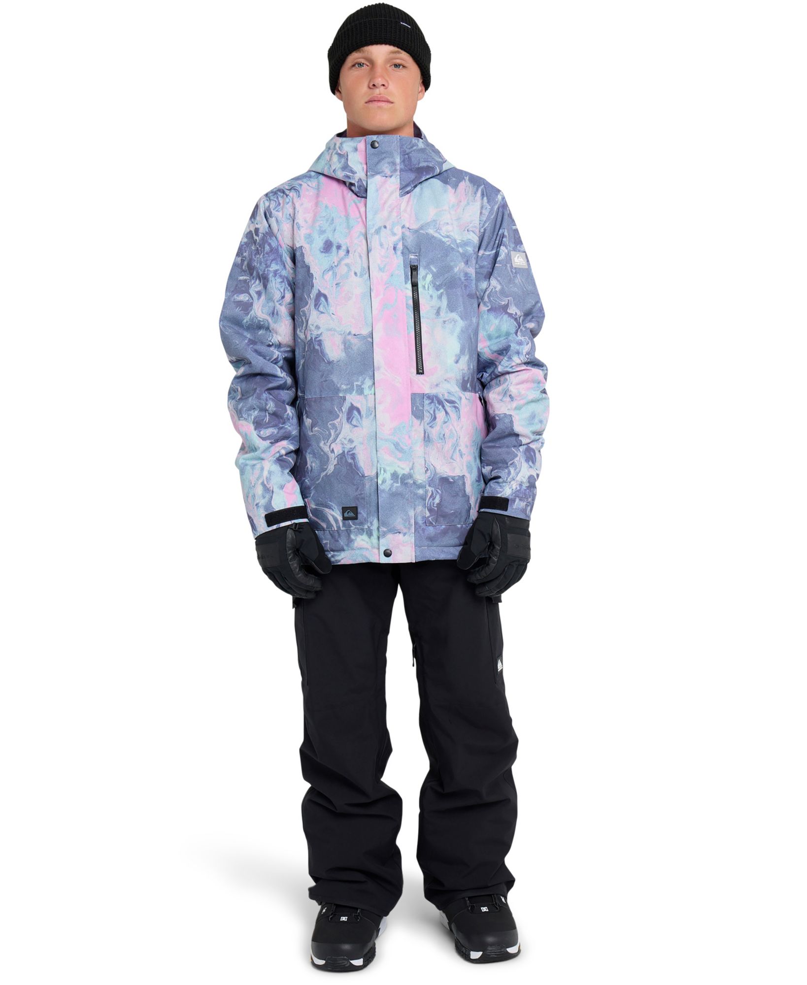 The Quiksilver Mission Print Insulated Snowboard Jacket delivers style and tech for any trip to the mountains. It starts with 10K DryFlight® waterproofing and WarmFlight® x2 Eco insulation from recycled PET bottles for superior warmth. And when the weather delivers the storm you’ve been waiting for, a powder skirt, underarm vents, and critically taped seams mean you’re prepared. It also offers a helmet-compatible hood, a sleeve pass pocket, chest pocket, handwarmer pockets, and internal media, and mesh pockets. Critical seams are taped, and underarm vents ensure breathability, making this the ultimate jacket for serious riders.