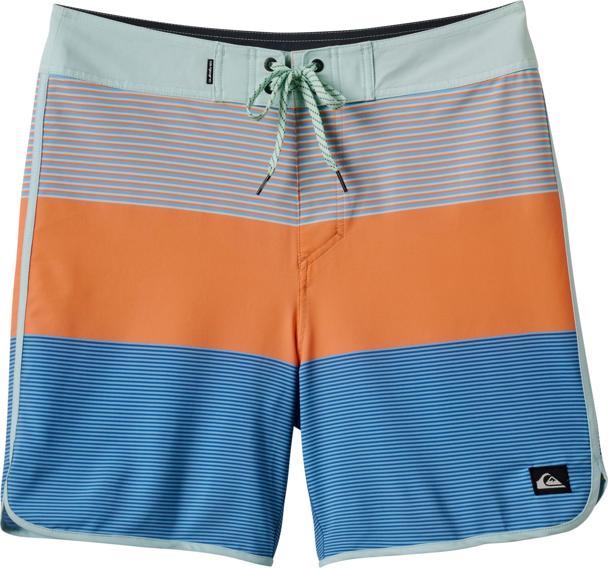 These premium boardshorts from Quiksilver's Everyday Collection are crafted of their innovative SurfSilk fabric, which is designed to feel extra strong on the outside, yet ultra-soft on the inside and gentle on the skin. Like silk, but for surfing. Complete with a performance fly and drawcord closure, these 19" Tijuana scalloped surf trunks come in a fresh range of striped colorways.