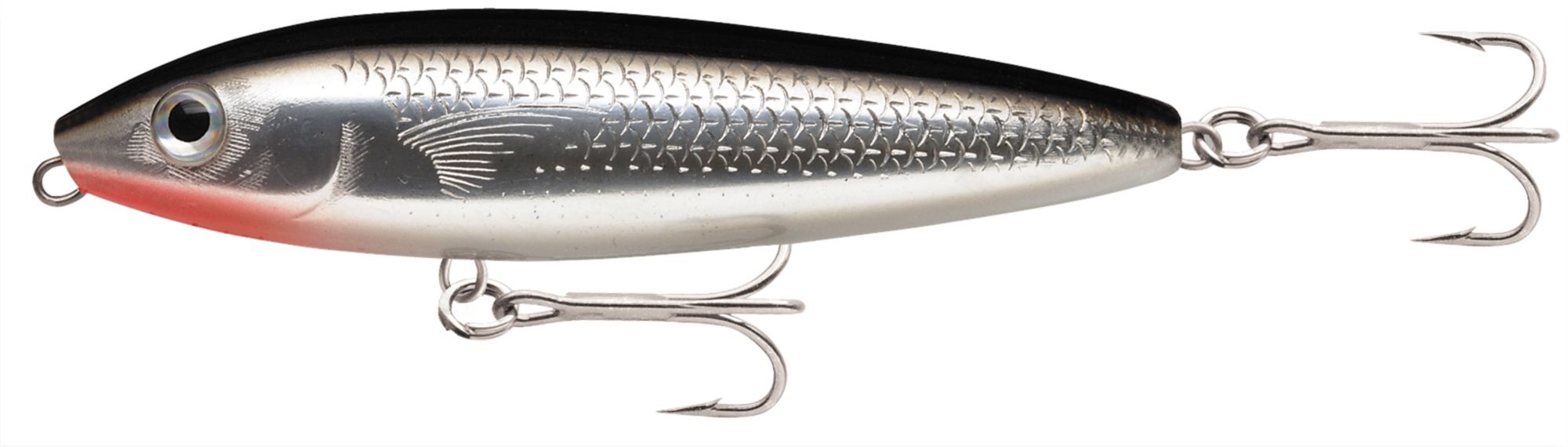 The Saltwater Skitter Walk® Topwater is designed with “Walk-the-Dog” action that mimics the swimming of a mullet or fleeing baitfish, attracting the attention of game fish. In addition, the realistic eyes and bright finish make it an irresistible target. The rugged construction and premium VMC® Perma Steel® hooks ensure that the Rapala® Saltwater Skitter Walk Topwater stands up to strikes of aggressive predators.