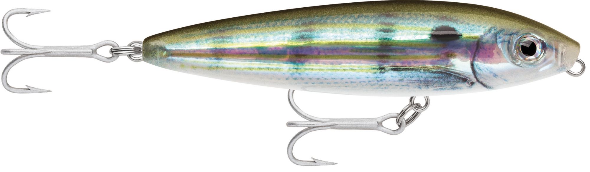 The Saltwater Skitter Walk® Topwater is designed with “Walk-the-Dog” action that mimics the swimming of a mullet or fleeing baitfish, attracting the attention of game fish. In addition, the realistic eyes and bright finish make it an irresistible target. The rugged construction and premium VMC® Perma Steel® hooks ensure that the Rapala® Saltwater Skitter Walk Topwater stands up to strikes of aggressive predators.