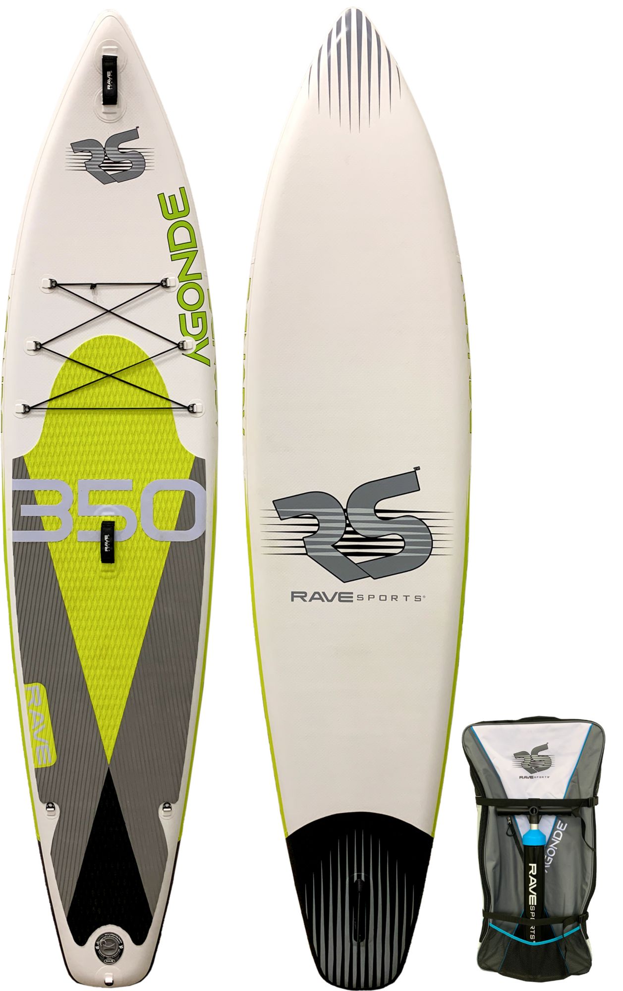 With a pointed nose for going the distance. “Agonde” is Ojibwe for “on the water,” so the Agonde 350 inflatable Paddle Board is durable, portable, and storable and built for adventurers.
