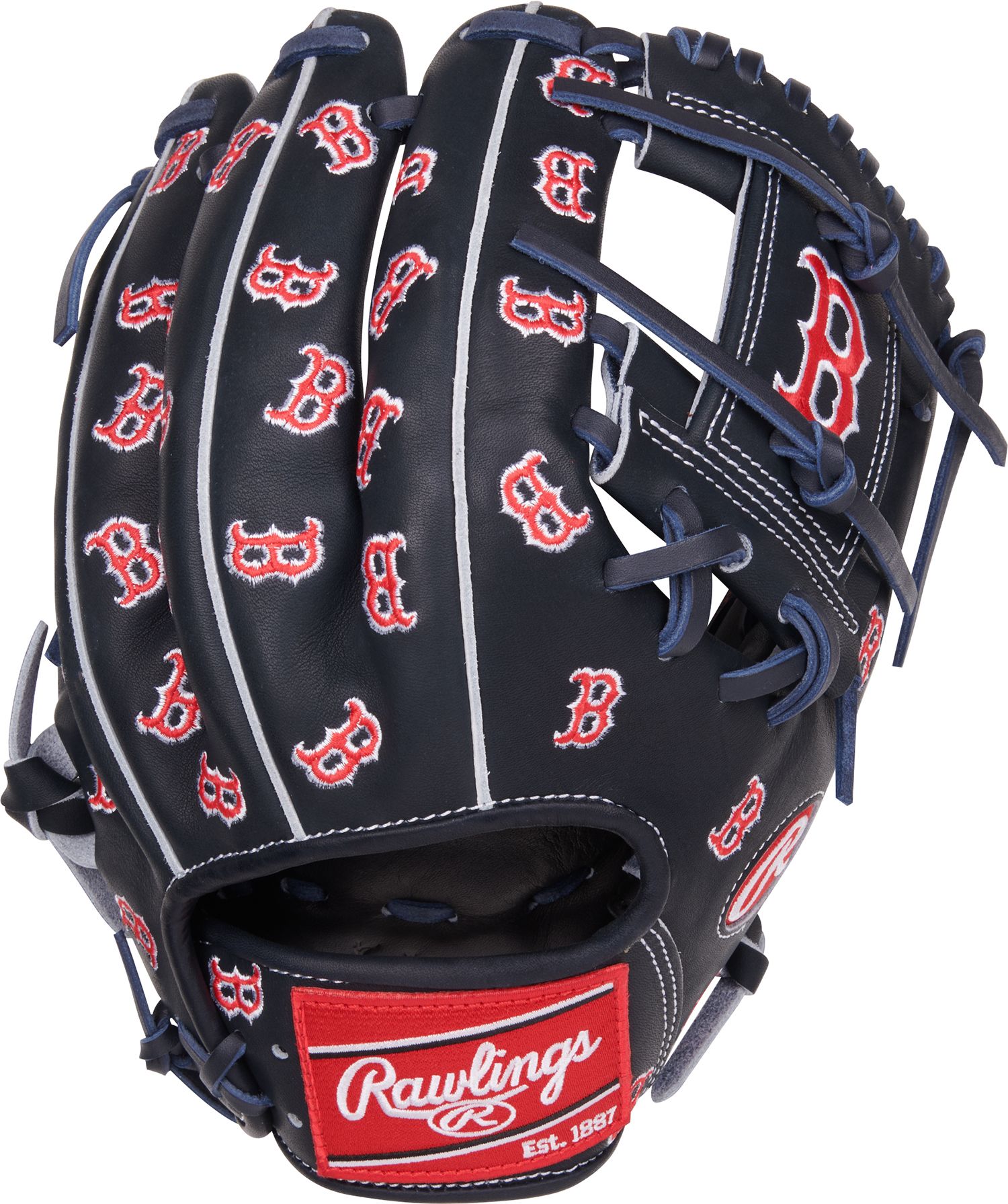 Red Sox fans, you have to check this out! The Boston Red Sox Heart of the Hide 11.75-inch infield glove was made just for any fan or collector. It was meticulously crafted from our world renowned, ultra-premium steer-hide leather for the same quality and performance many of the game's top players demand. This unique HOH infield glove features a Braves logo embroidered on all over this Red Sox themed glove.