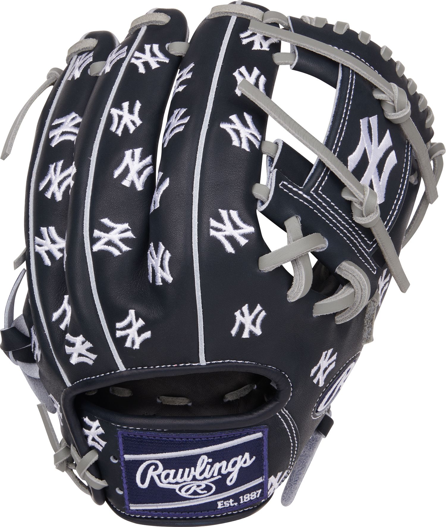 Yankees fans, you have to check this out! The New York Yankees Heart of the Hide 11.75-inch infield glove was made just for any fan or collector. It was meticulously crafted from our world renowned, ultra-premium steer-hide leather for the same quality and performance many of the game's top players demand. This unique HOH infield glove features a Braves logo embroidered on all over this Yankees themed glove.