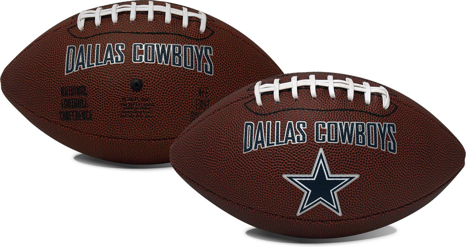 Bring a little extra team spirit to your next backyard game with the Rawlings® Dallas Cowboys Game Time Football. With a team logo and wordmark on opposite sides, this full-size football proudly displays your love of the Cowboys. The team’s conference and division sit below the wordmark, adding an authentic look. A pebbled design makes throwing the perfect pass easy, and the included display stand lets you show off your team loyalty.