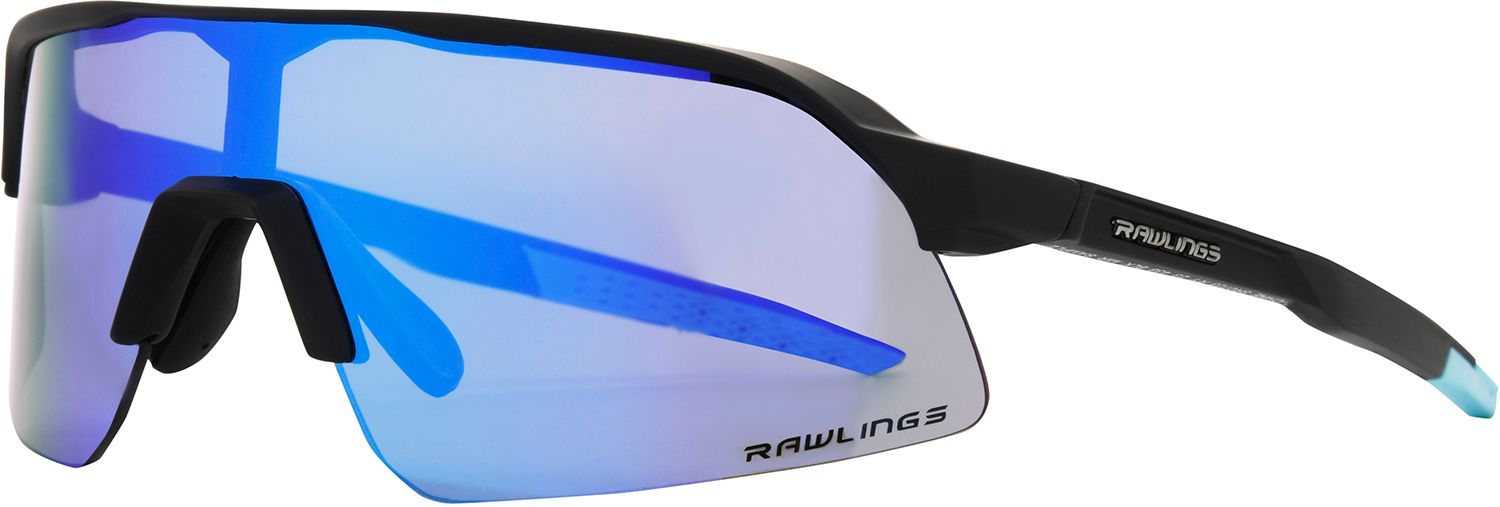 Whether you're in the stands or in the outfield, Rawlings X Sunglasses should be your go-to shades! They have shield-style frames made out of white plastic. The tips accent the temples and together with the bridge bar and nose pads, help hold the sunglasses securely in place. The colorful lenses are also scratch and impact resistant, and provide 100% UVA-UVB lens protection.