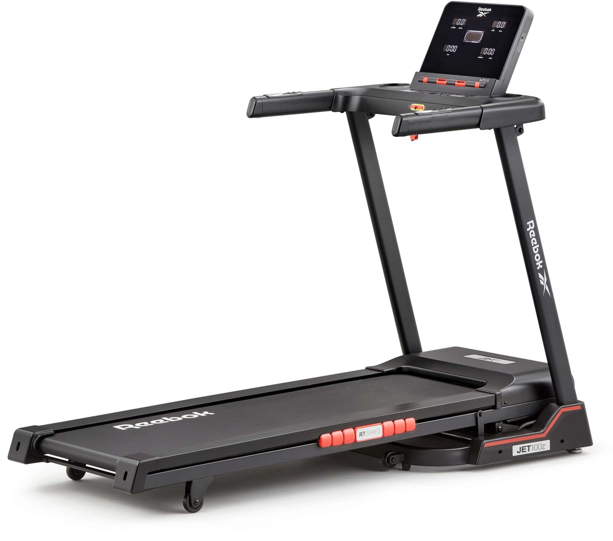The Reebok Jet 100z Treadmill is ideal for home cardio fitness thanks to its 2.0 Hp motor, which delivers speeds of 0.6 – 11 mph across 12 levels of electronic incline. Designed with Air Motion cushioning technology, the Jet 100z reacts to each foot strike, transferring air between the cushioning pods to offer support where it's needed most.