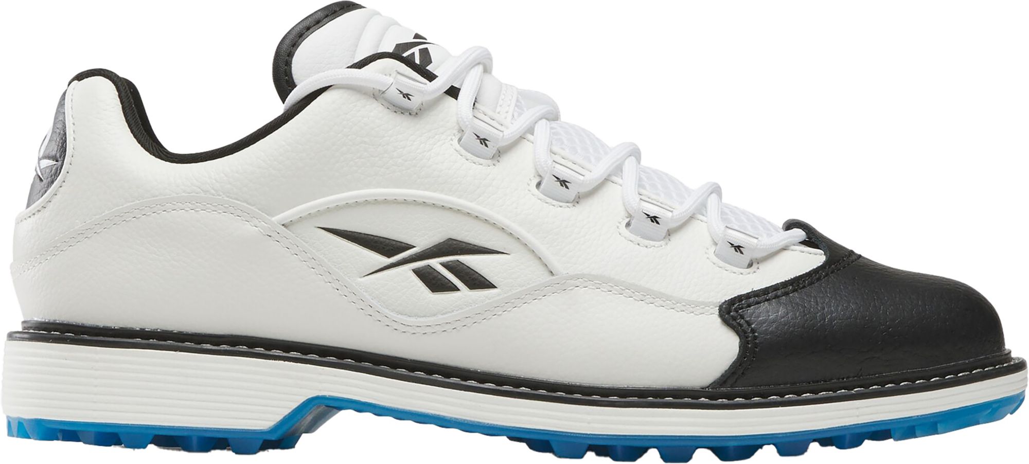 On the course or in the clubhouse, elevate your experience in these Reebok golf shoes. The full grain leather upper has a contrasting leather toe that's inspired by a heritage basketball silhouette. The spikeless crystal outsole makes it easy to transition from the links to the dining room.