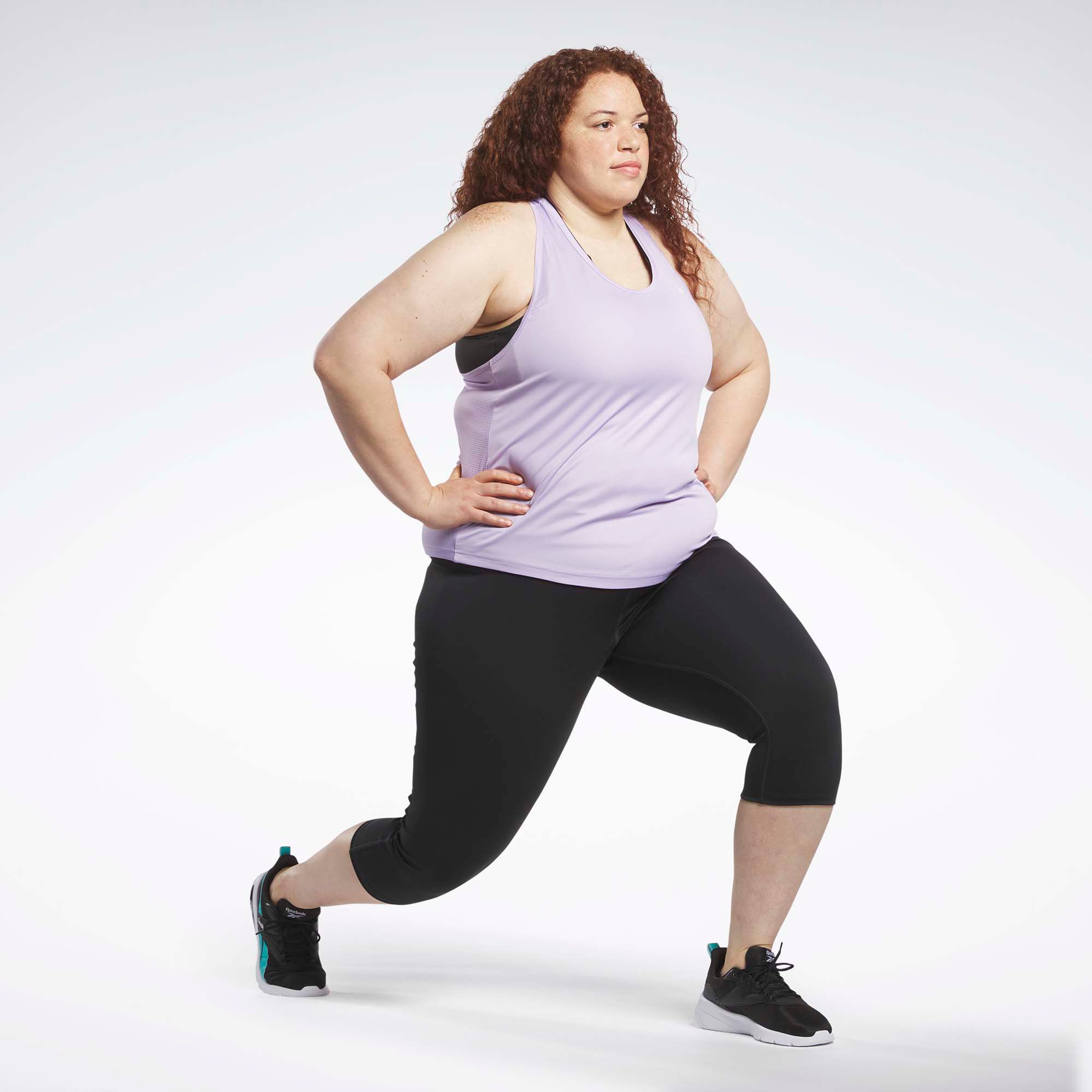 Run the stadium stairs or churn through leg day at the gym. These women's Reebok capri-length tights keep you cool and dry thanks to sweat-wicking Speedwick technology. The mid-rise waist has a crossover design for a flattering fit. A stash pocket at the back holds your key and card while you train.