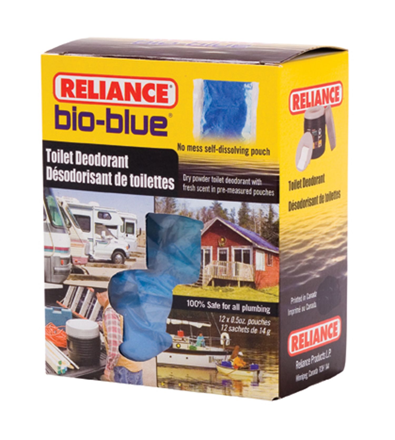 You can keep your toilet smelling fresh as a daisy with Reliance ® Bio-Blue Toilet Deodorant. This dry powder deodorant can be placed in the holding tank of your toilet before or after use to quickly neutralize and destroy odors while leaving a pleasant smell. 12 self-dissolving single dose pouches are included.