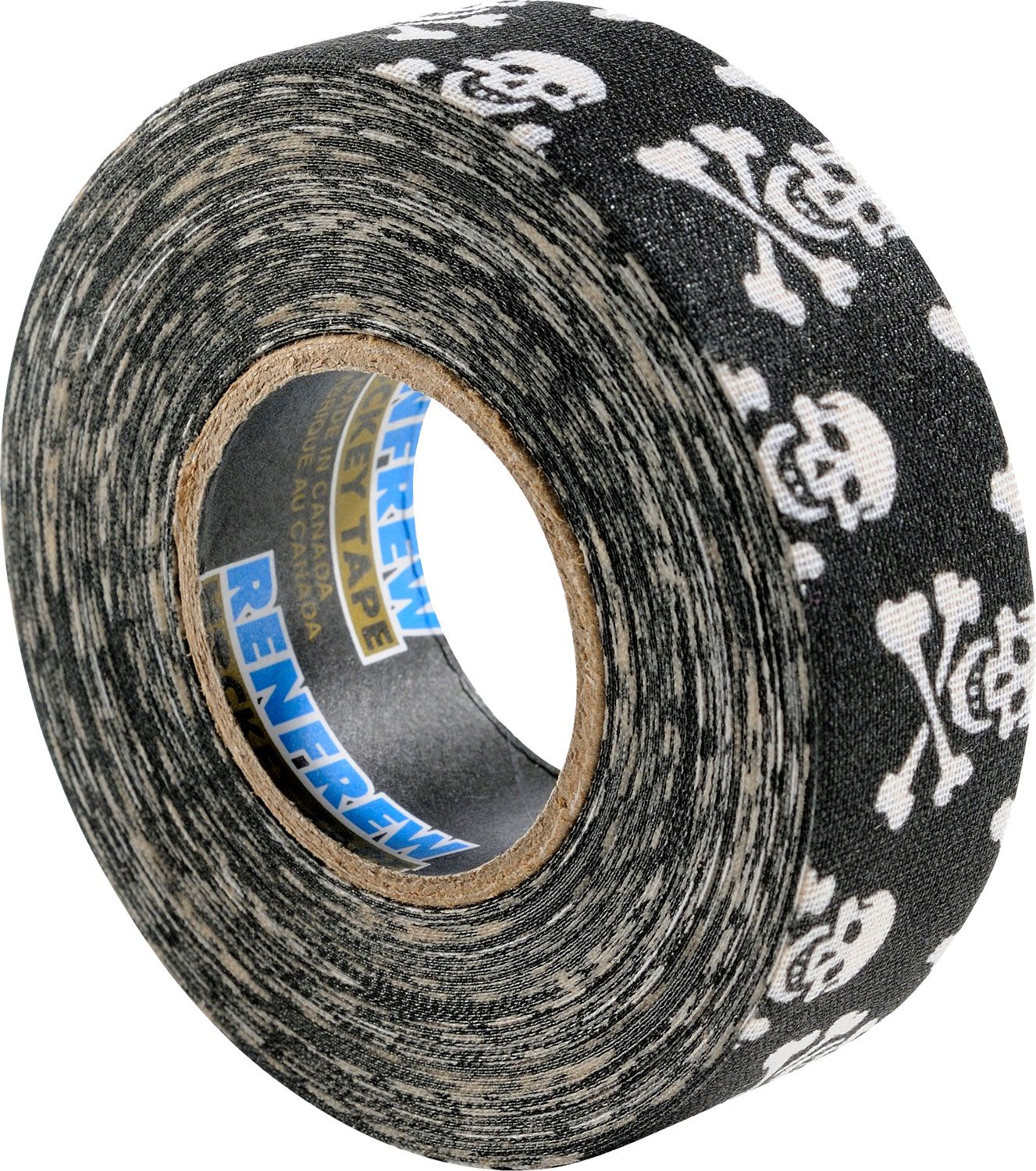 Keep your hockey stick in top condition this season with Renfrew™ Hockey Blade Tape. Optimal for use on one-piece composite hockey sticks, this polyester/cotton blended cloth sports with a natural rubber adhesive improves the stick blade’s durability and protects it from abrasion caused during play. Designed with an aggressive skulls pattern, with the Renfrew™ Hockey Tape you’ll protect your stick blade while intimidating the offense.