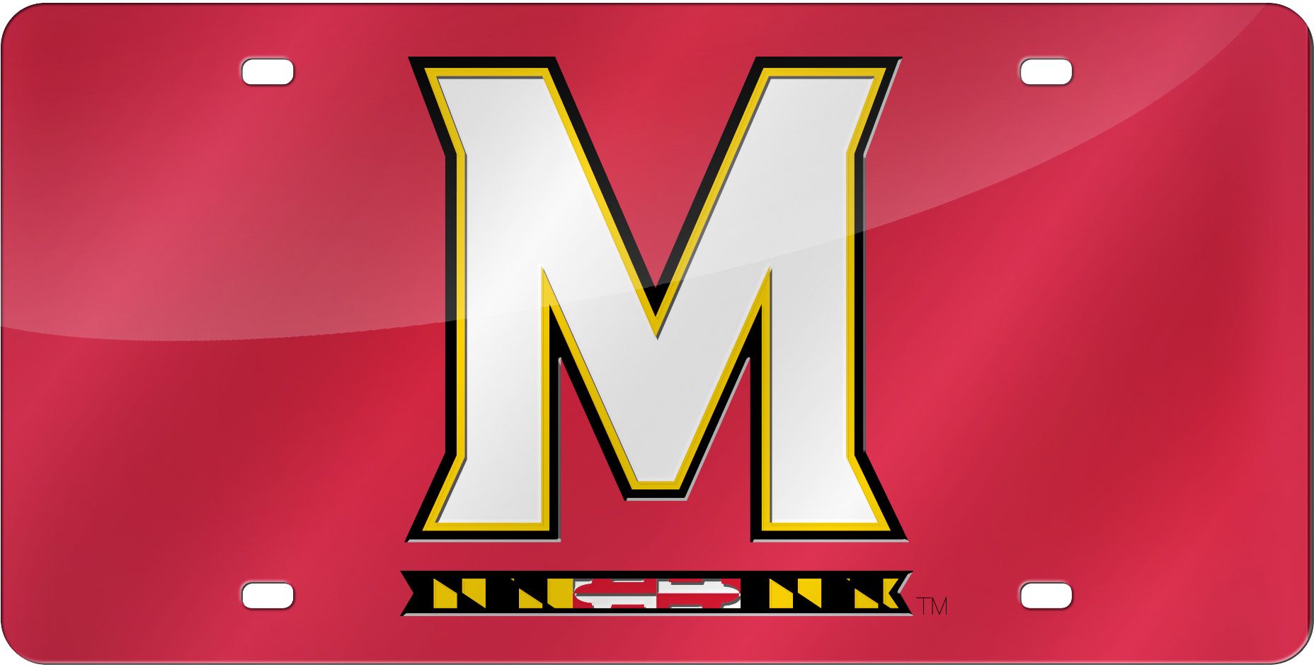 Leave no one guessing which team you root for when on the road with the Rico® Maryland Terrapins Red Laser Tag License Plate. This standard size acrylic license plate with laser-engraved logo shows off your favorite team to everyone you pass. The mirrored design will catch everyone's eye as you show your pride and passion with the Rico® Laser Tag License Plate.