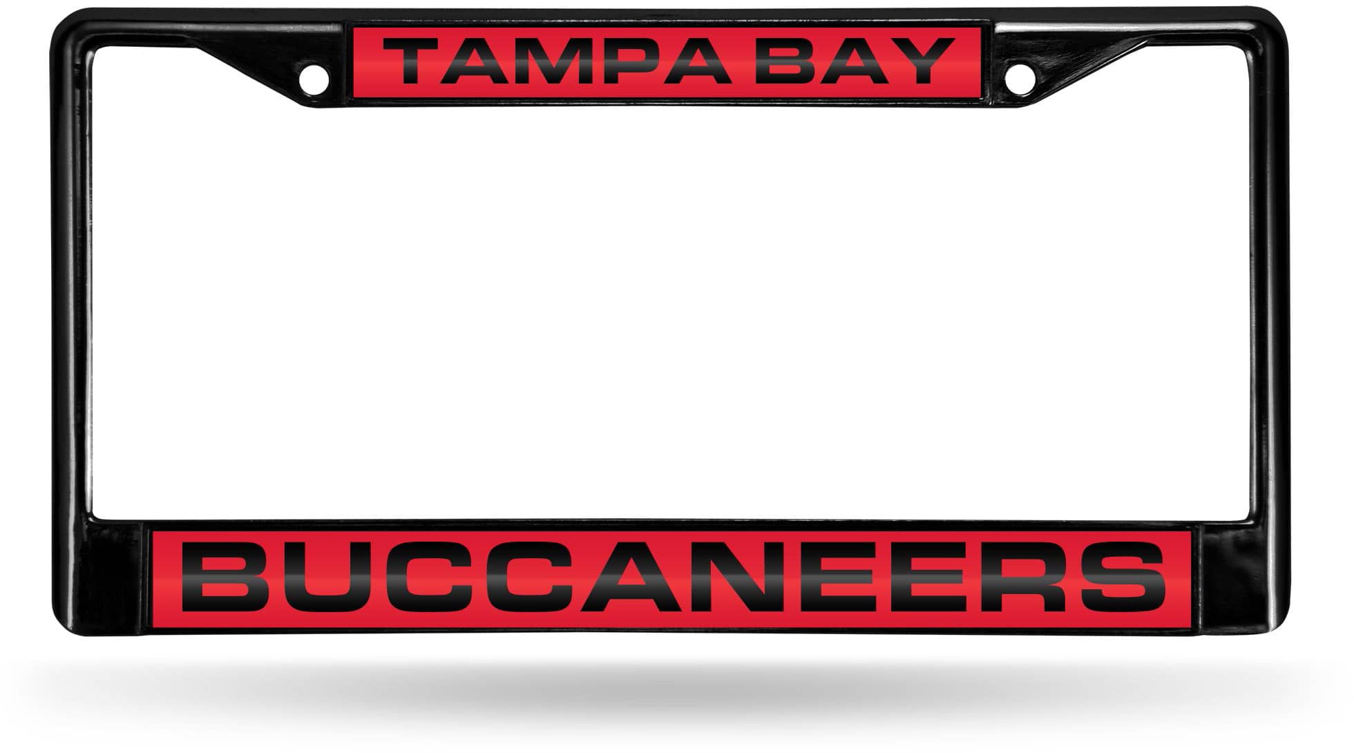 Leave no one guessing which team you root for when on the road with the Rico® Tampa Bay Buccaneers Black Laser Chrome License Plate Frame.