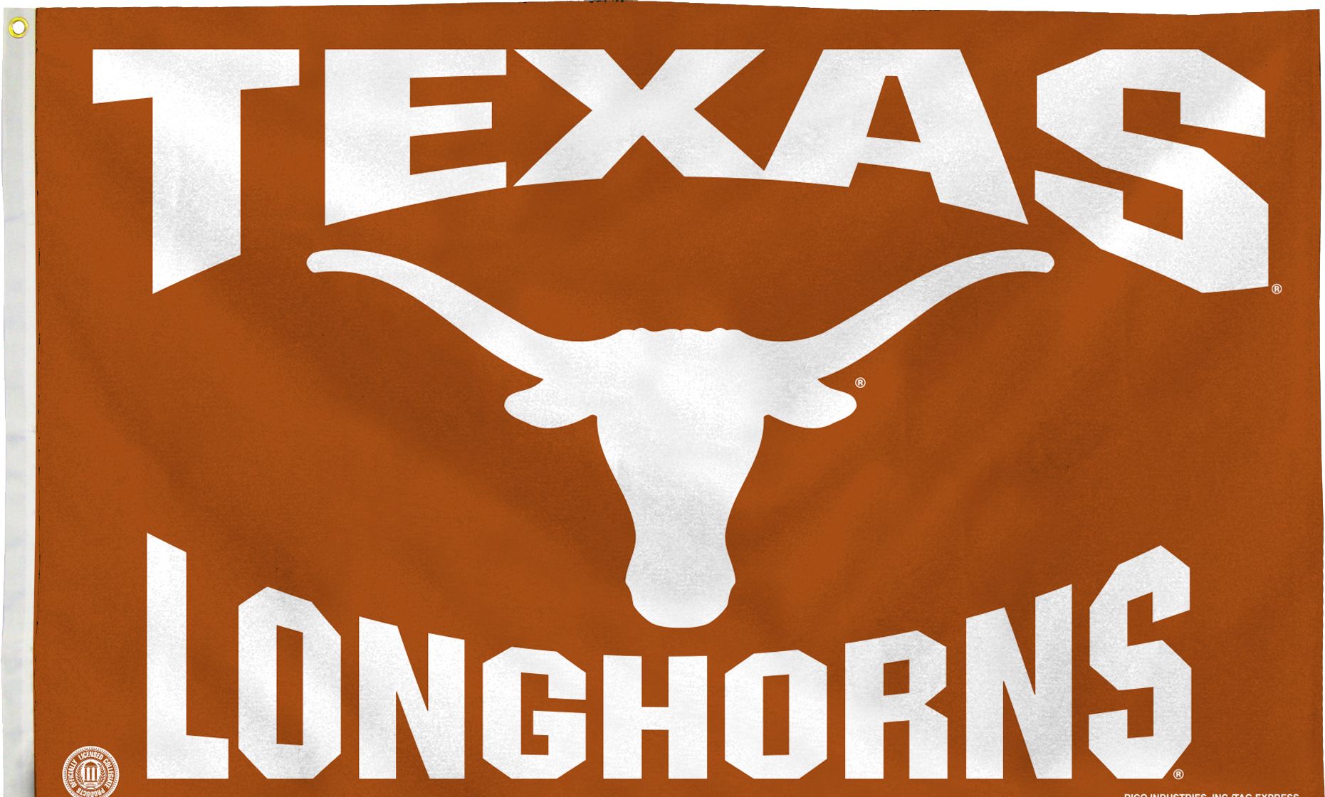 Fly your team pride high on game day with the Rico® Texas Longhorns Banner Flag. Featuring a screen-printed team graphic on one side in vibrant team colors, this banner flag lets any passerby know you are a die-hard Longhorns fan. The durable fabric and two brass grommet holes ensure that your team pride will be on display in any weather when you have the Rico® Banner Flag.