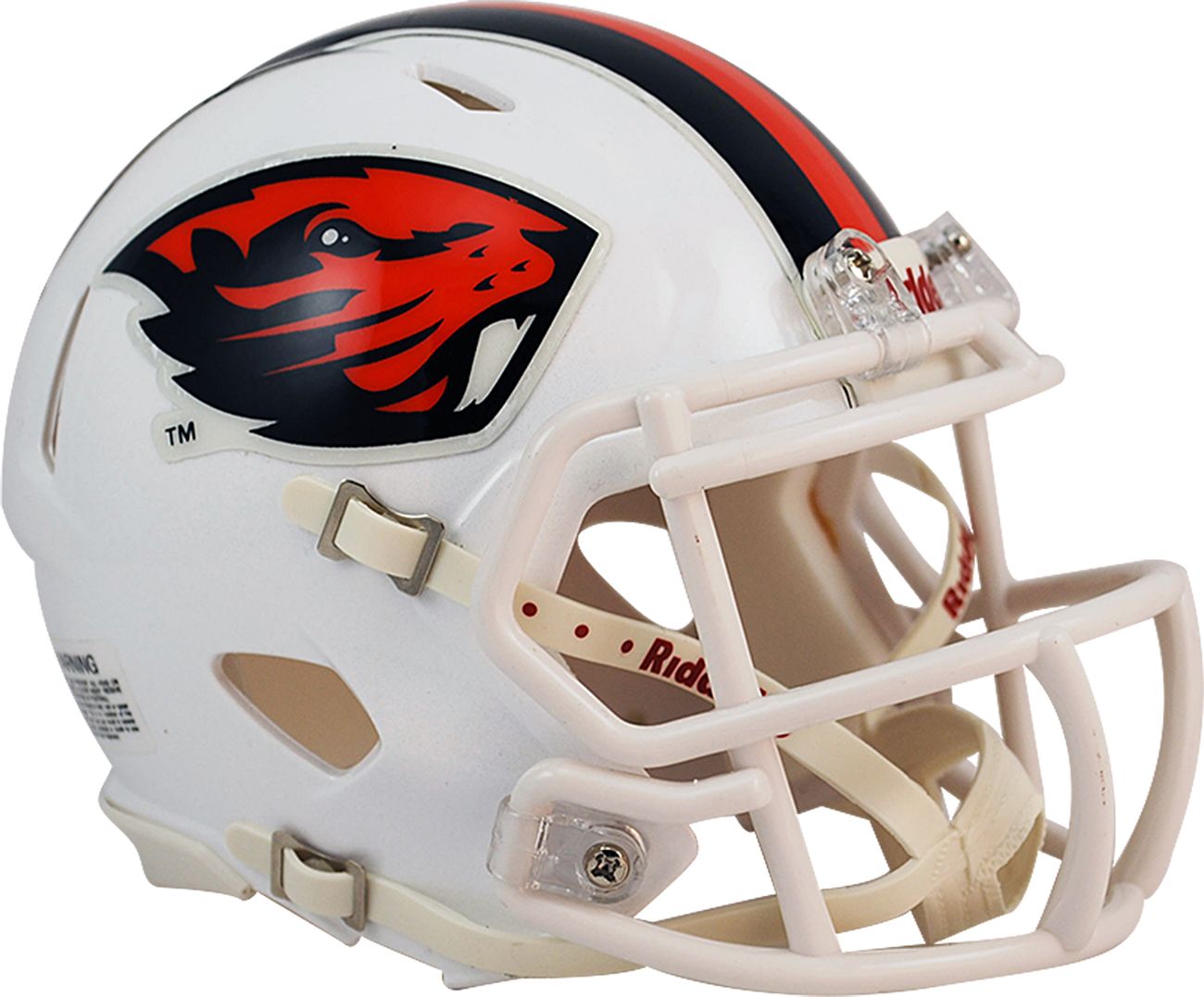 Cheer on your team with the Riddell® Oregon State Beavers Speed Mini Football Helmet. The OSU graphics and colors on the helmet decorate any room in Orange and Black spirit. Designed to look like the same helmet players wear, the half-scale replica features a 4-point chinstrap and interior padding providing authenticity. The 5” design is the perfect size to showcase in your home or office.