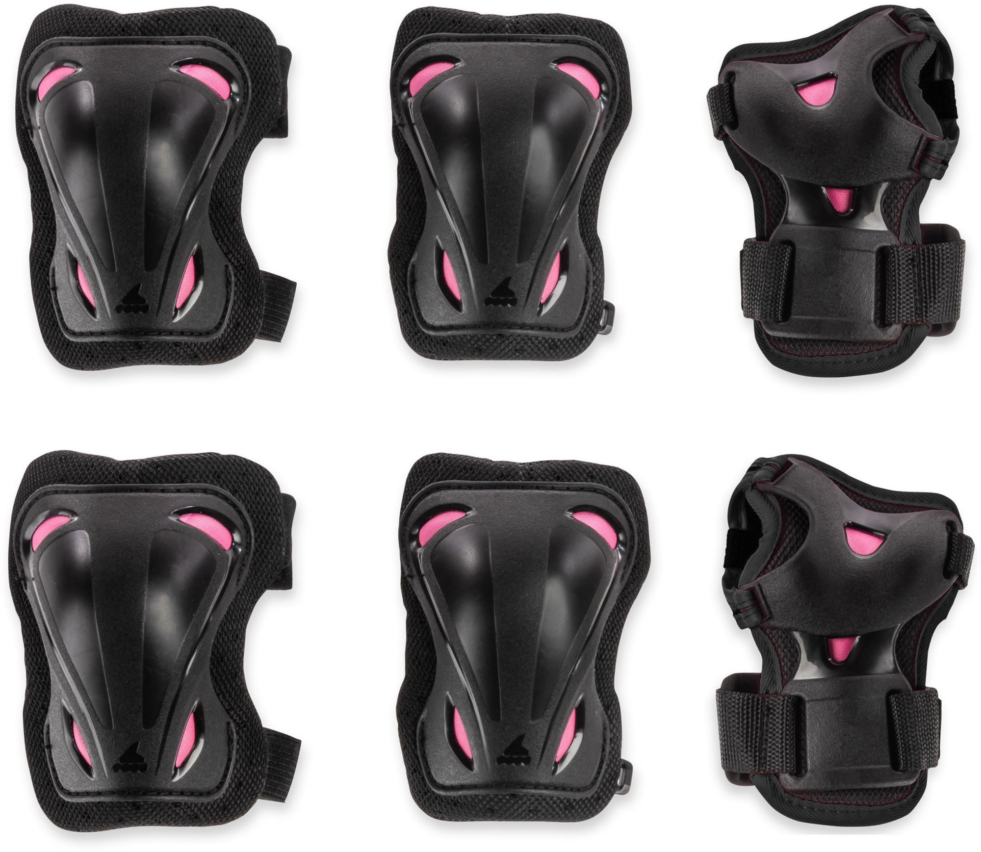 Skate Gear 3 Pack is designed for women. Value-priced, this gear pack protects wrists, knees and elbows. Anatomically left/right designed with protective caps, the sock sleeve and strap system ensure a correct fit.
