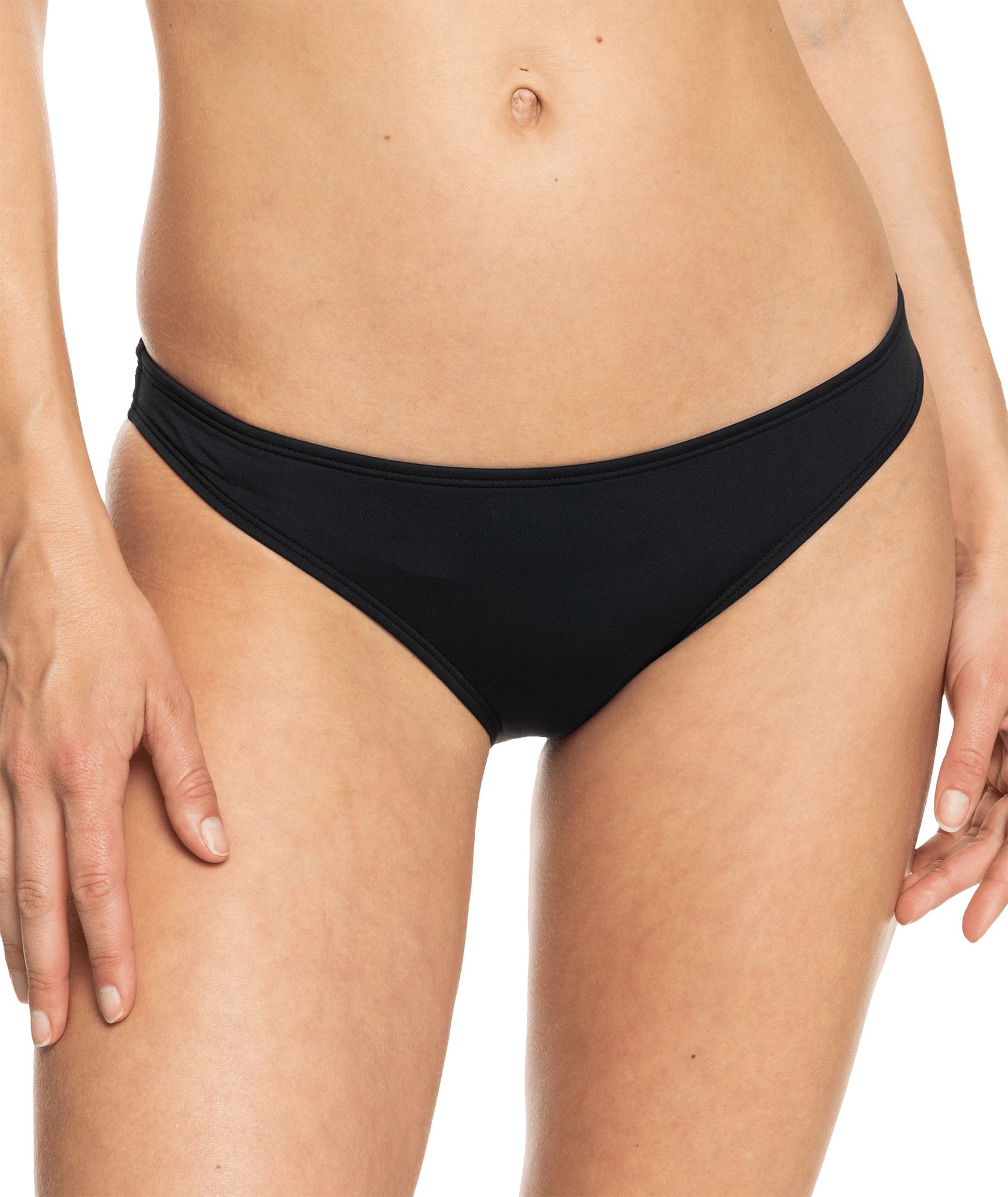 I’ve always been a sucker for Roxy swimsuits and they still get the job done. Snagged these bottoms in an extra large and they fit great material is smooth and not too thick. They cover my behind just perfectly. Can never go wrong with basic black bottoms.