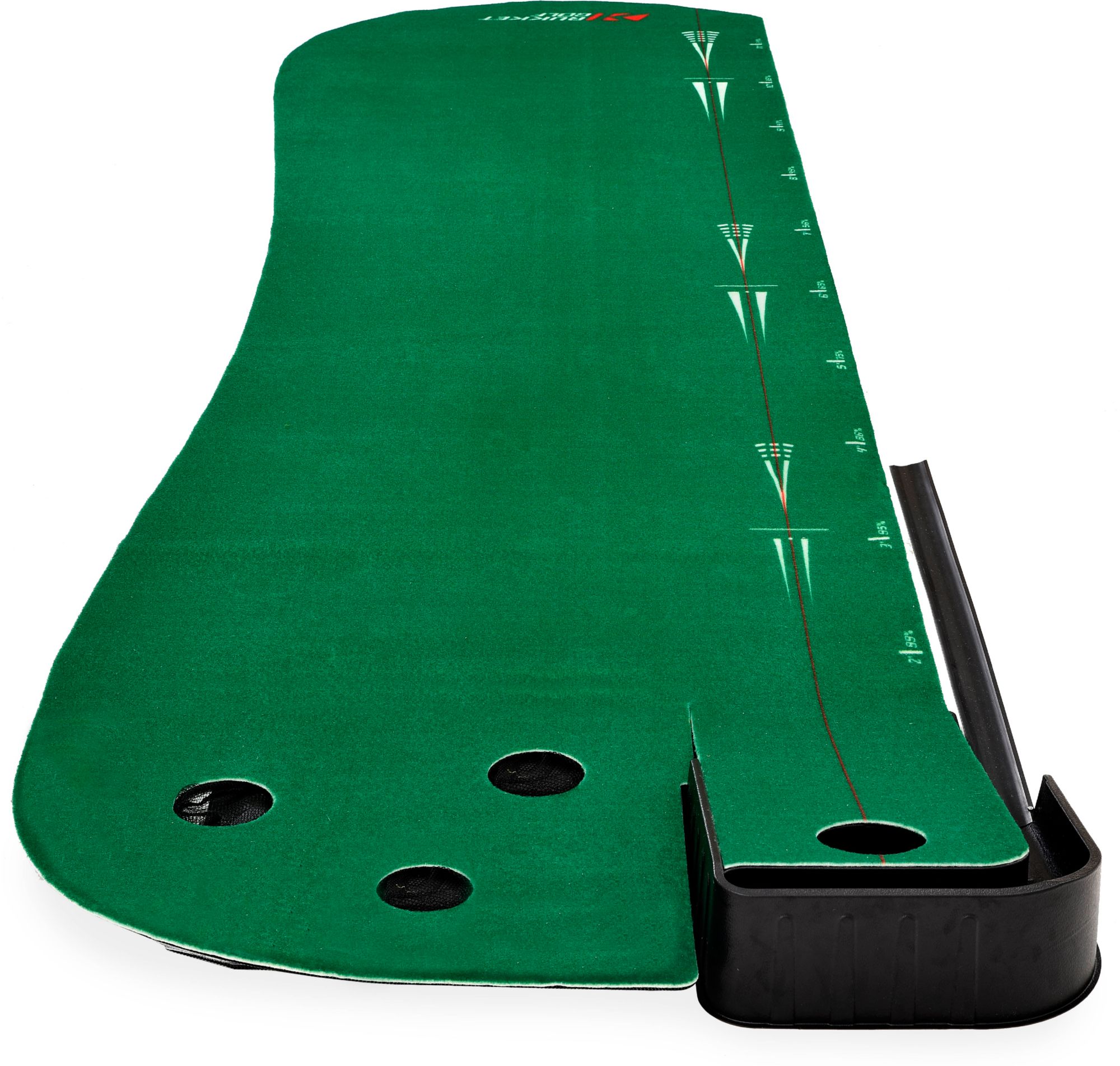 Rukket's 2-in-1 Putting green is the ultimate tool for indoor or outdoor patio putting practice. Offering 4 different cups to putt to, this putting green gives you looks that others simply can't! Pro Percentages: Distance percentage graphic gives you a feel for how often a pro would make a putt from each spot; aim to match their percentages and improve your golf game right away! It's time to master your short game!