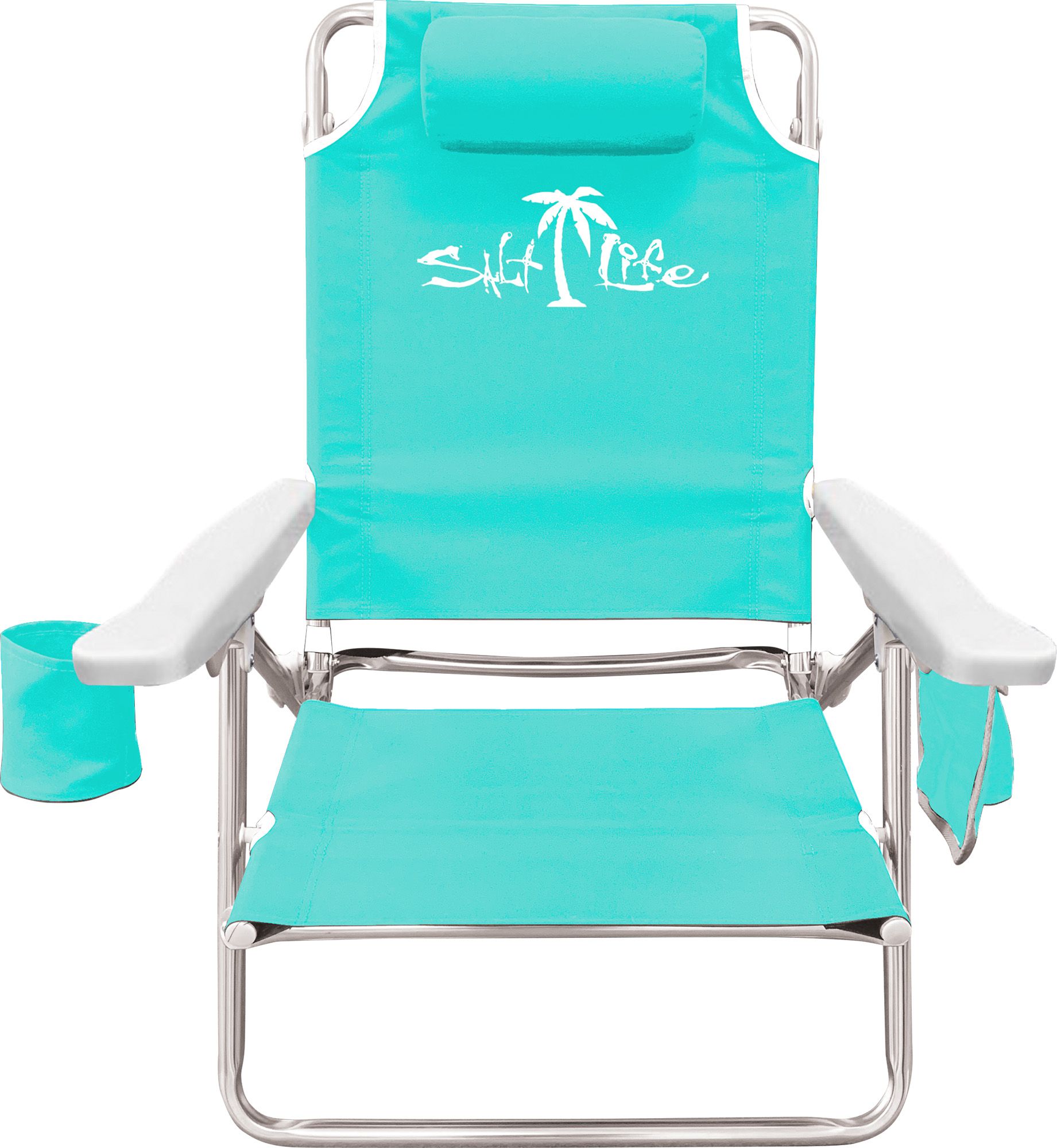 Relax in style with the Salt Life 5-Position Folding Beach Chair. Perfect for a day at the beach, this chair features a flap pillow for added comfort and upgraded armrests with pockets for convenient storage. The aluminum tube frame and polyester fabric ensure durability, while the carry strap makes it easy to transport.