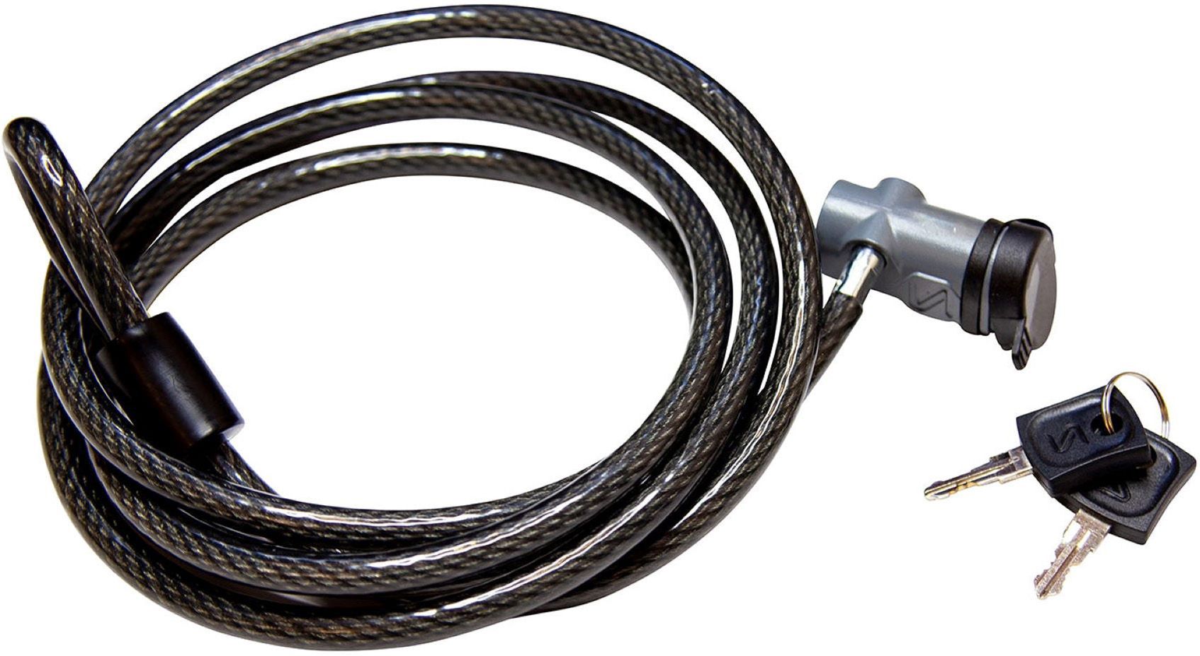 • 10mm braided stainless steel cable lock offers added security while traveling with your bike