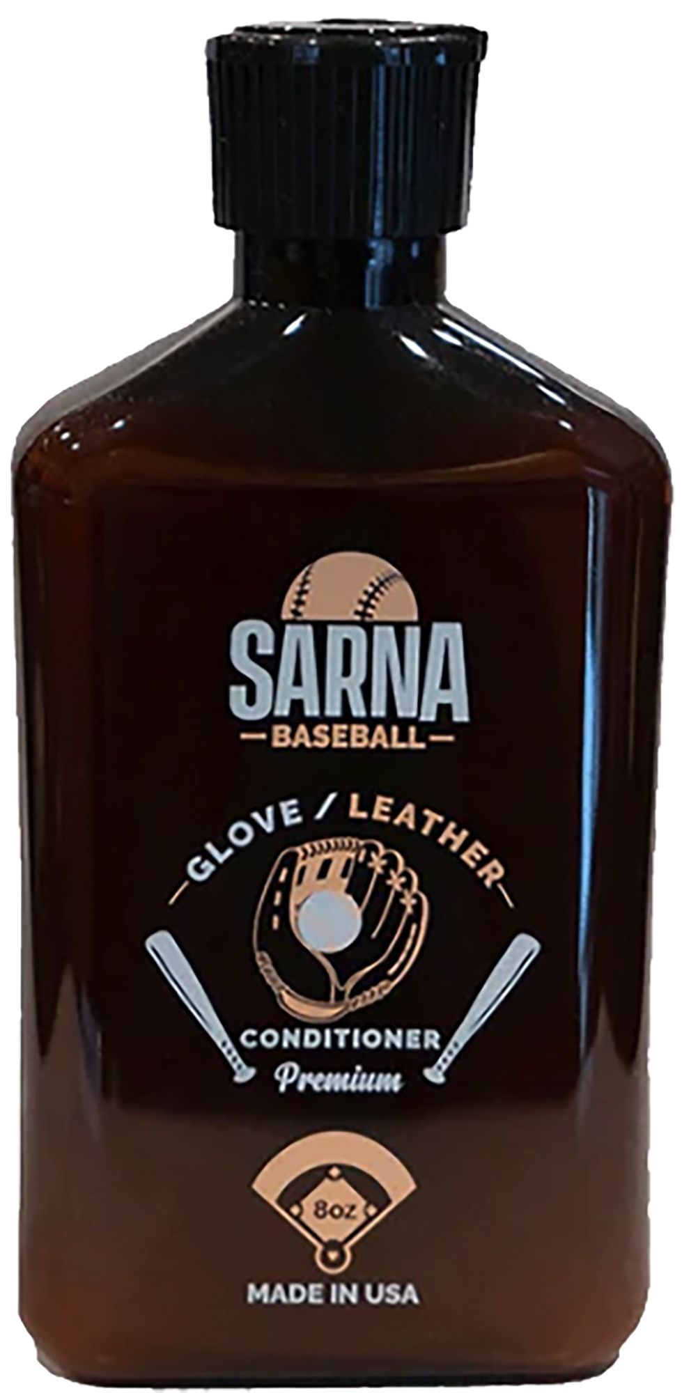 Sarna Baseball® Glove Leather Conditioner is a true leather conditioner that does not contain detrimental waxes as active ingredients. Sarna's formula allows the leather to breathe ensuring durability and a long healthy life. It also softens your new, stiff leather glove to assist in properly breaking it in. Trust in Sarna Leather Conditioner to preserve and protect your gloves and to treat them as they should be treated.