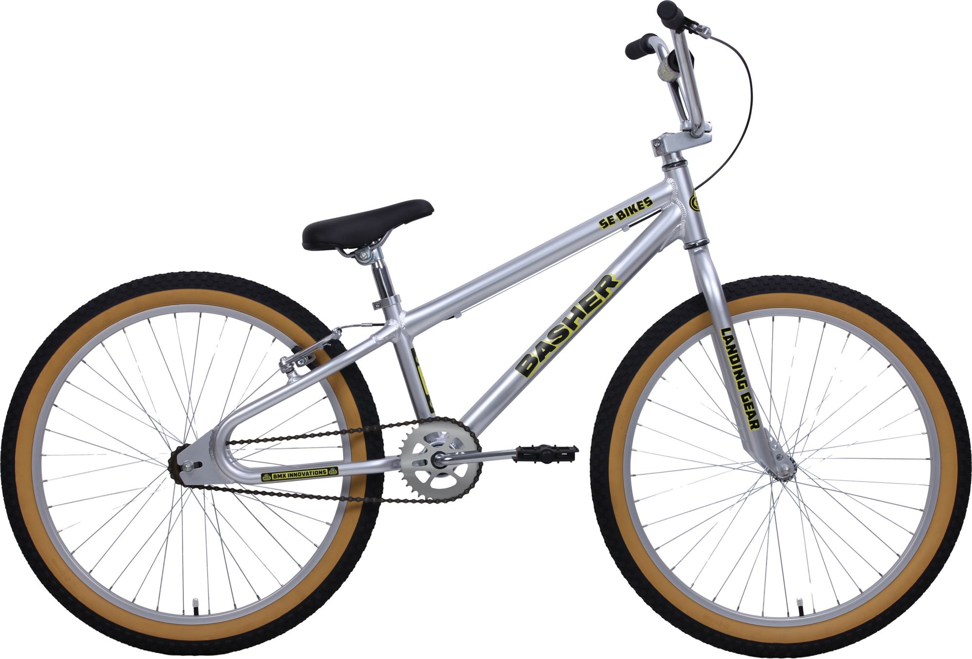 The Basher was designed by SE’s founder, Scot Breithaupt, during the first BMX boom of the early ‘80s. The bike is making its return this year in a new 24” wheel size built specifically for kids. The 24” Basher’s stylish and lightweight frame is built with 6061 aluminum and features a low standover, legendary looptail rear end, and retro dropouts. The 24” frame is perfectly sized for growing kids who are ready to explore their neighborhood and beyond.