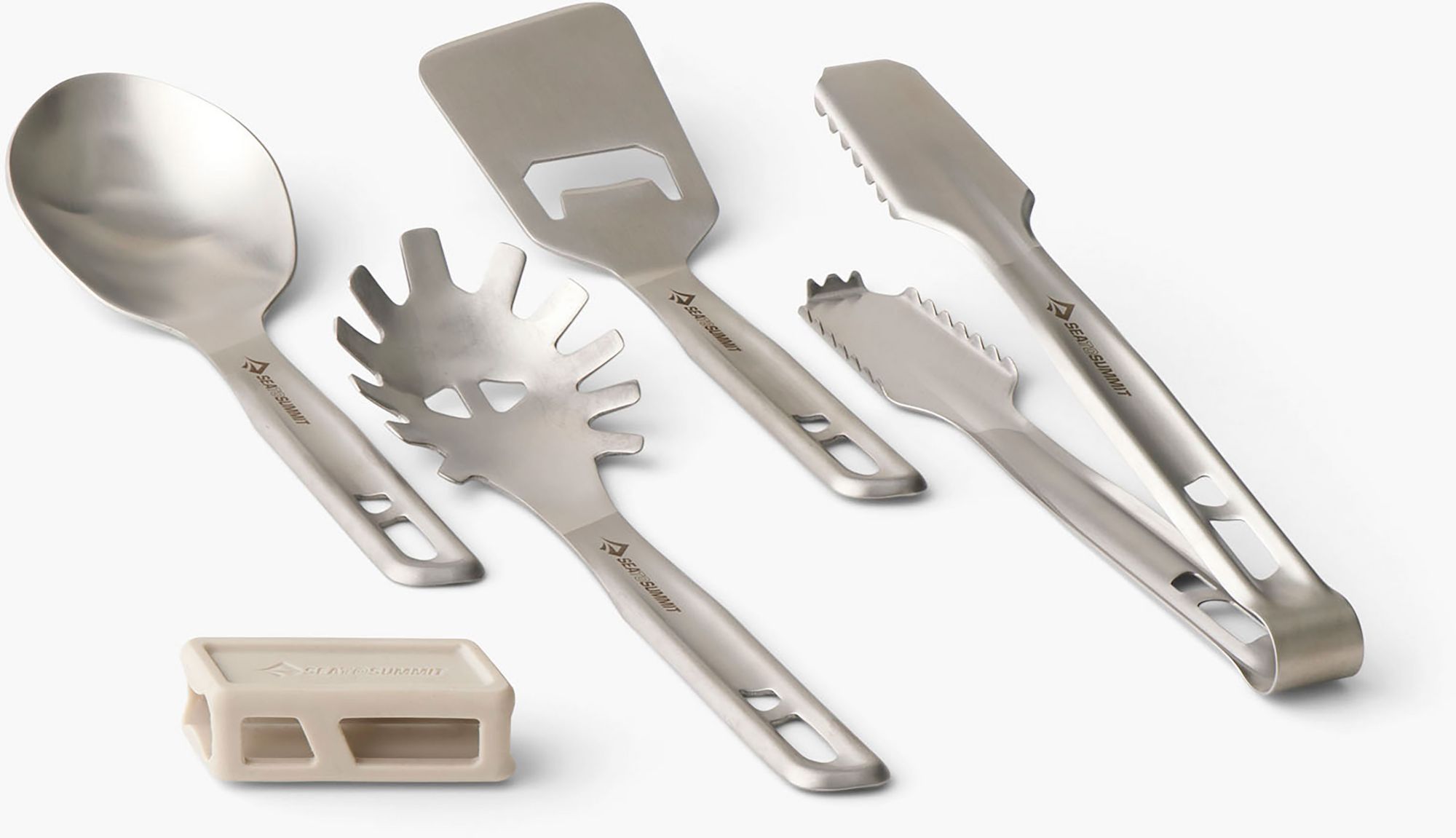 When it's time to stop digging through your institution's/outfitters's fleet of incomplete kitchen totes with random crusty tools from decades ago, consider this set for one-stop shopping. It has pretty much all the tools I want on a group trip or front country kitchen. I like the way it interlocks to pack small (and, more critically, more easy to find in the group kitchen tote common to many programs.) Small packing is the goal on kayak trips, so I love this compact toolkit. The addition of tongs is appreciated, too. I like stainless for program use much more than plastic, so another win.