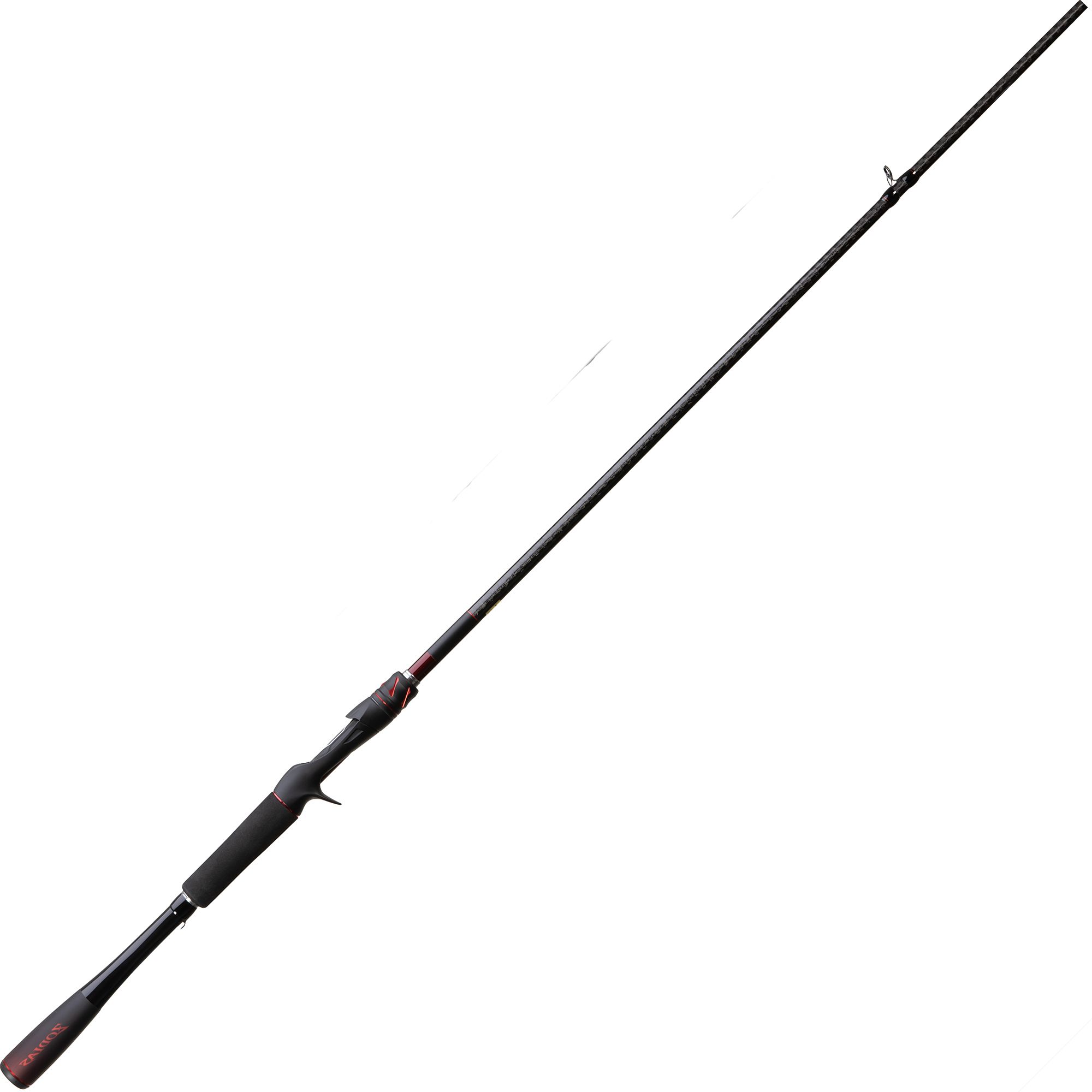 Hi-Power X: Hi-Power X construction uses diagonally-wrapped carbon tape to form an array of “x” shapes on the rod blank’s outermost layer. The width of the tape, its winding angle and the part of the rod being wrapped are fine-tuned according to the target fish species. Hi-Power X construction delivers sharp and crisp rod control for the angler