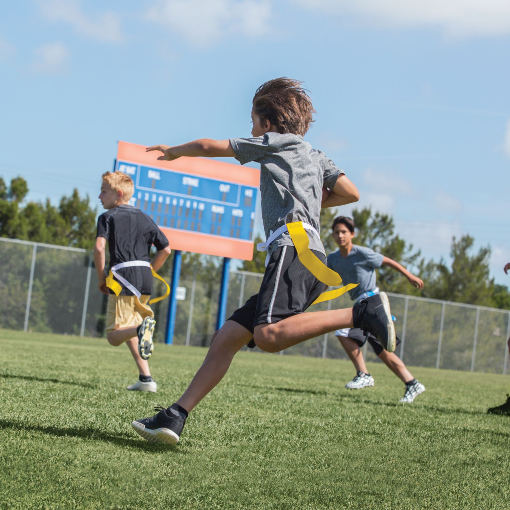 For great football fun without full-contact bumps and bruises, the SKLZ® 10-Man Flag Football Set comes with the equipment you need to maximize the fun of the game. The SKLZ® Flag Football Set includes a set of belts, flags, cones and a set of rules. Additionally, the 10 Man Flag Football Set is portable enough for the beach and rugged enough for the park or field. Recommended for youth or adults ages 7 and up.