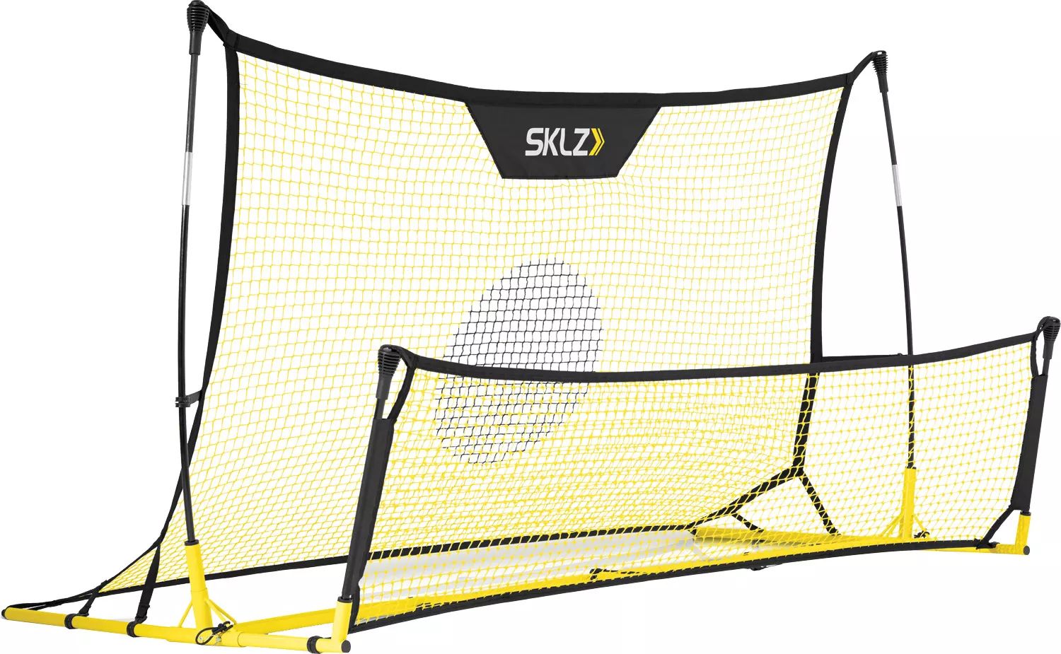 Master the ground and the air with the SKLZ® Quickster® Soccer Trainer. This portable 7’ x 3’6” frame allows you to practice both headers and footwork. The full rebounder pops the ball into the air so you can sky above your rivals while the low rebounder returns the ball on the ground to promote footwork. A lightweight design teams with the easy setup so you can take the Trainer to every field and court around.
