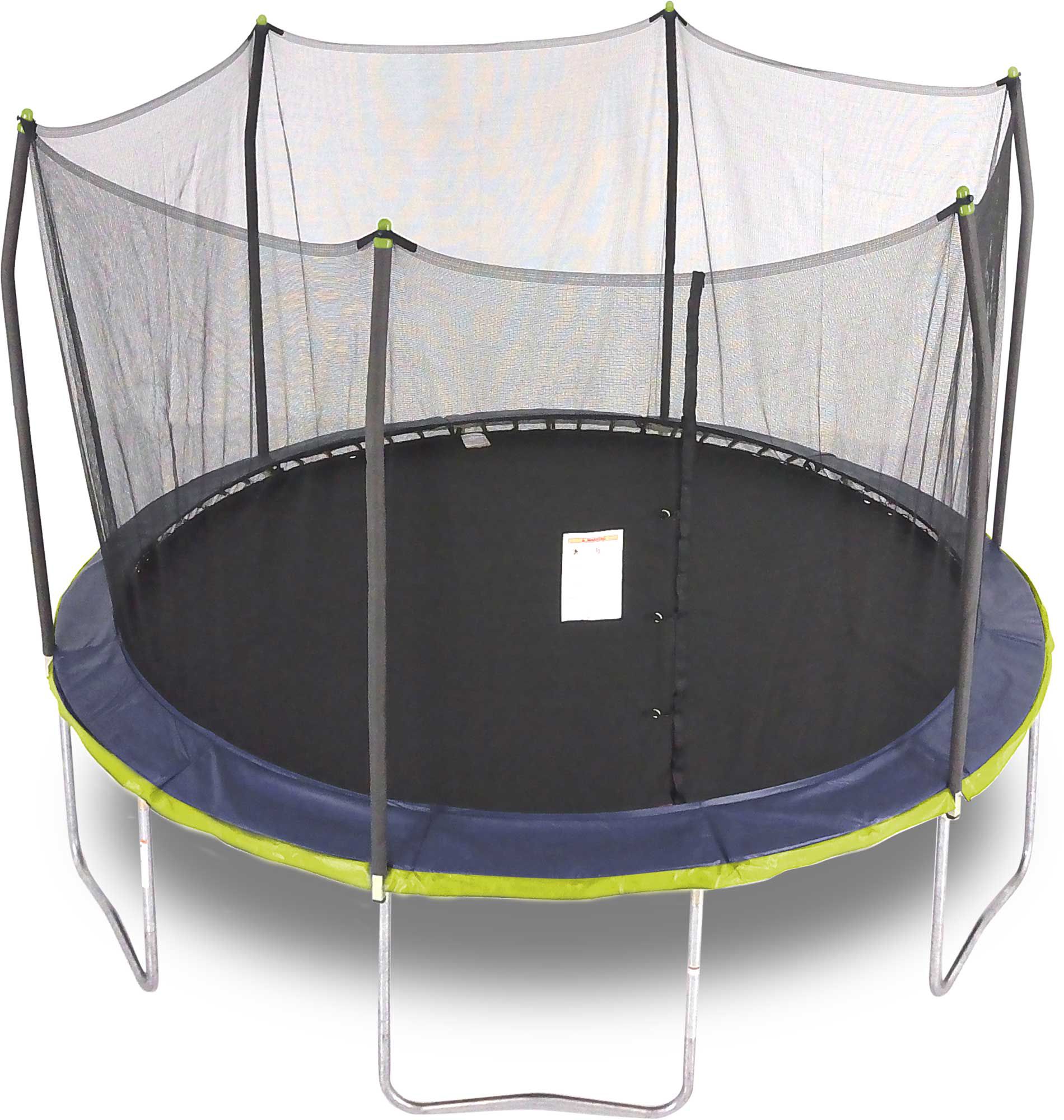 Fun for the whole family, the Skywalker Trampolines 13’ Round Trampoline Combo is the perfect addition to your backyard. This trampoline features a sturdy steel frame, safety enclosure net, and vinyl-coated jump mat. The safety enclosure is attached to the mat to eliminate gaps and prevent pinch points. It has a dual-color spring pad for a bright and colorful look.