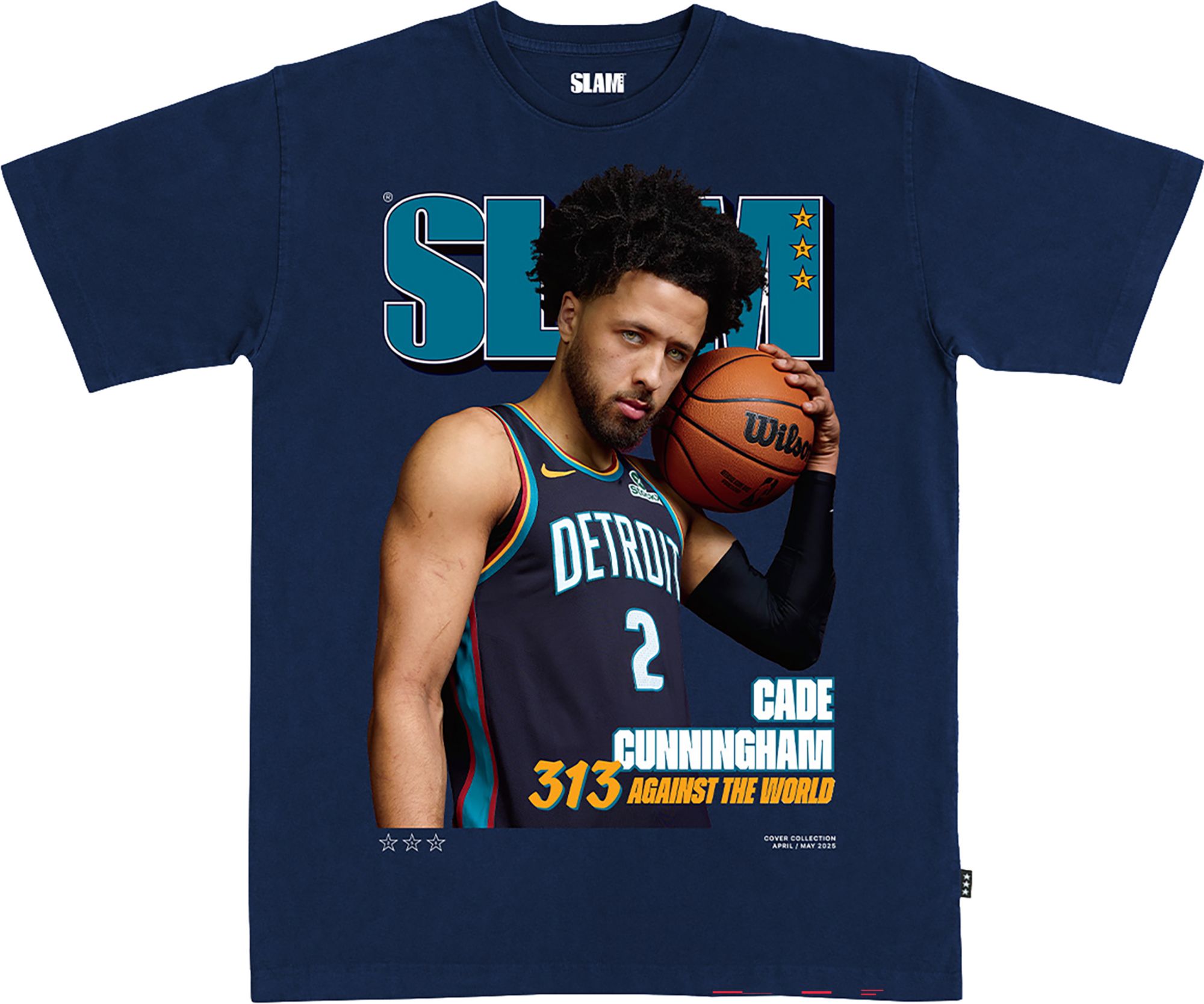 SLAM Men's Detroit Pistons Cade Cunningham #2 Navy 2025 City Edition Slam Cover T-Shirt