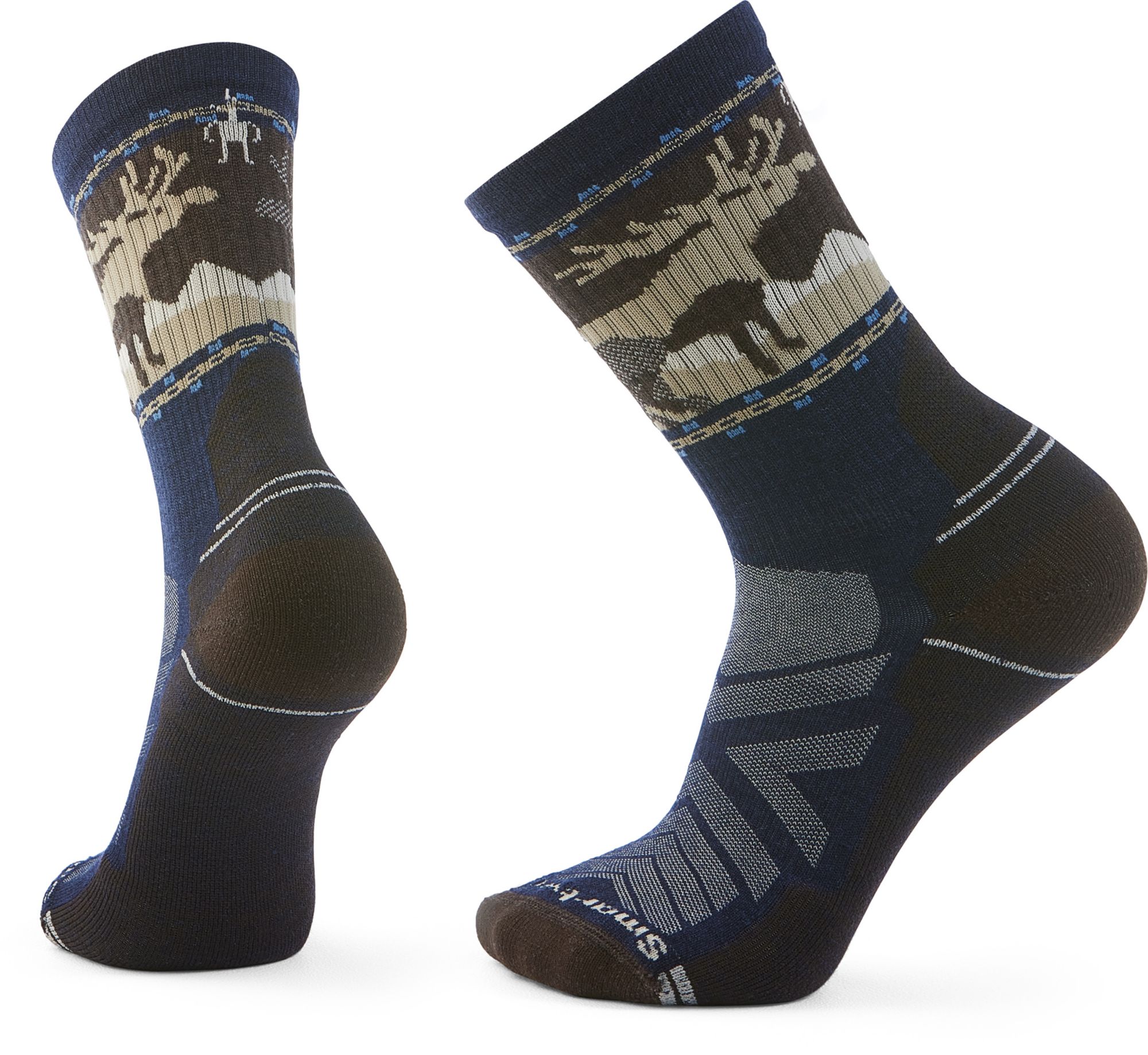 The Hike Light Cushion Mountain Moose Crew Socks gets us about as close as we'd want to be to a moose in the wild. Designed with our top sock technologies for durability, comfort, and breathability, this trail-ready pair helps prevent blisters and keep your feet feeling good from start to summit. Plus, the light cushioning makes them a go-to for all-season hikes.