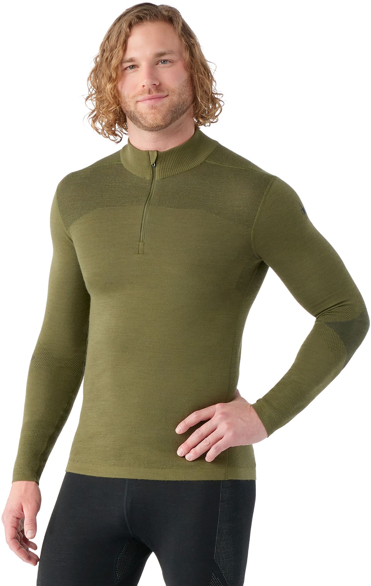 New to our innovative Intraknit™ line is the Men's Intraknit™ Thermal Merino Base Layer 1/4 Zip. This Smartwool® base layer is 3D-mapped for a near-custom fit and freedom of movement. Its engineered construction helps enhance your performance with a lighter weight and cleaner finish. If you're looking for base layer clothing for cold weather, this one uses Merino Sport yarn that combines the power and benefits of Merino wool with the durability and fast dry times of polyester—creating the ultimate performance-ready top for all of your high-energy activities.
