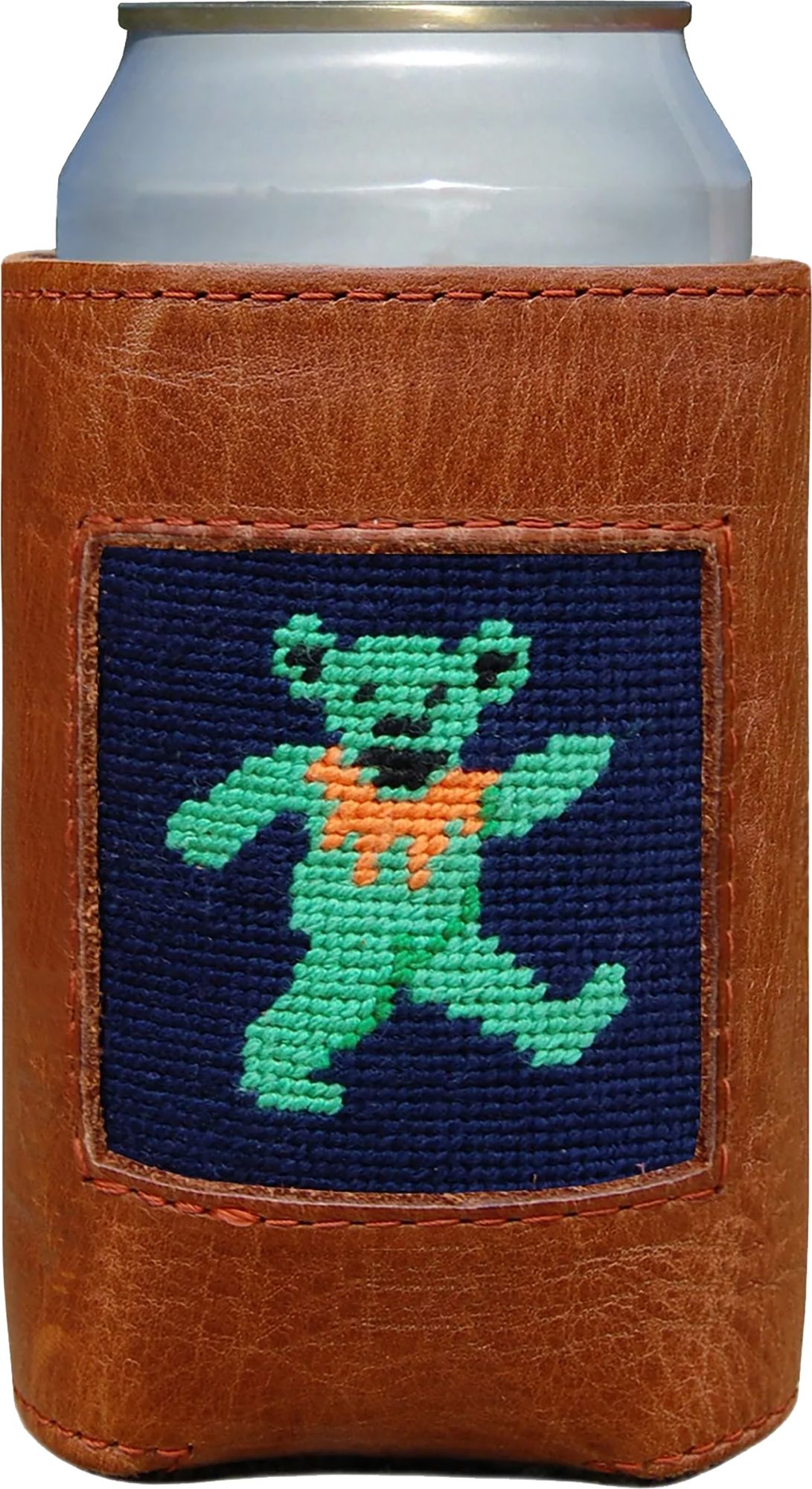 • Smathers & Branson's can coolers combine their signature 100% hand-stitched needlepoint with an Italian, full grain leather exterior and neoprene liner