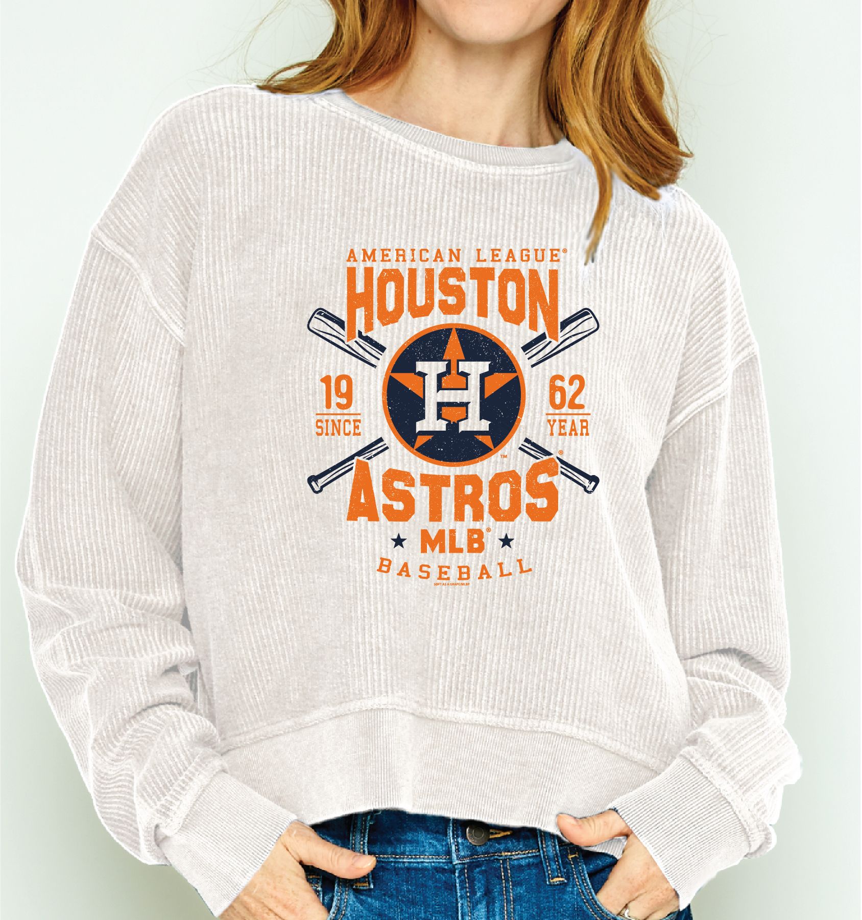 Soft As A Grape Women's Houston Astros White Cropped Corded Crew Pullover Sweater