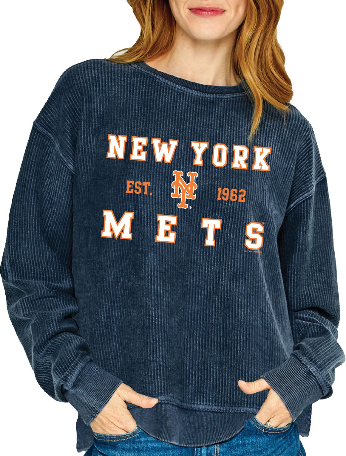Soft As A Grape Women's New York Mets Blue Crew Pullover Sweater
