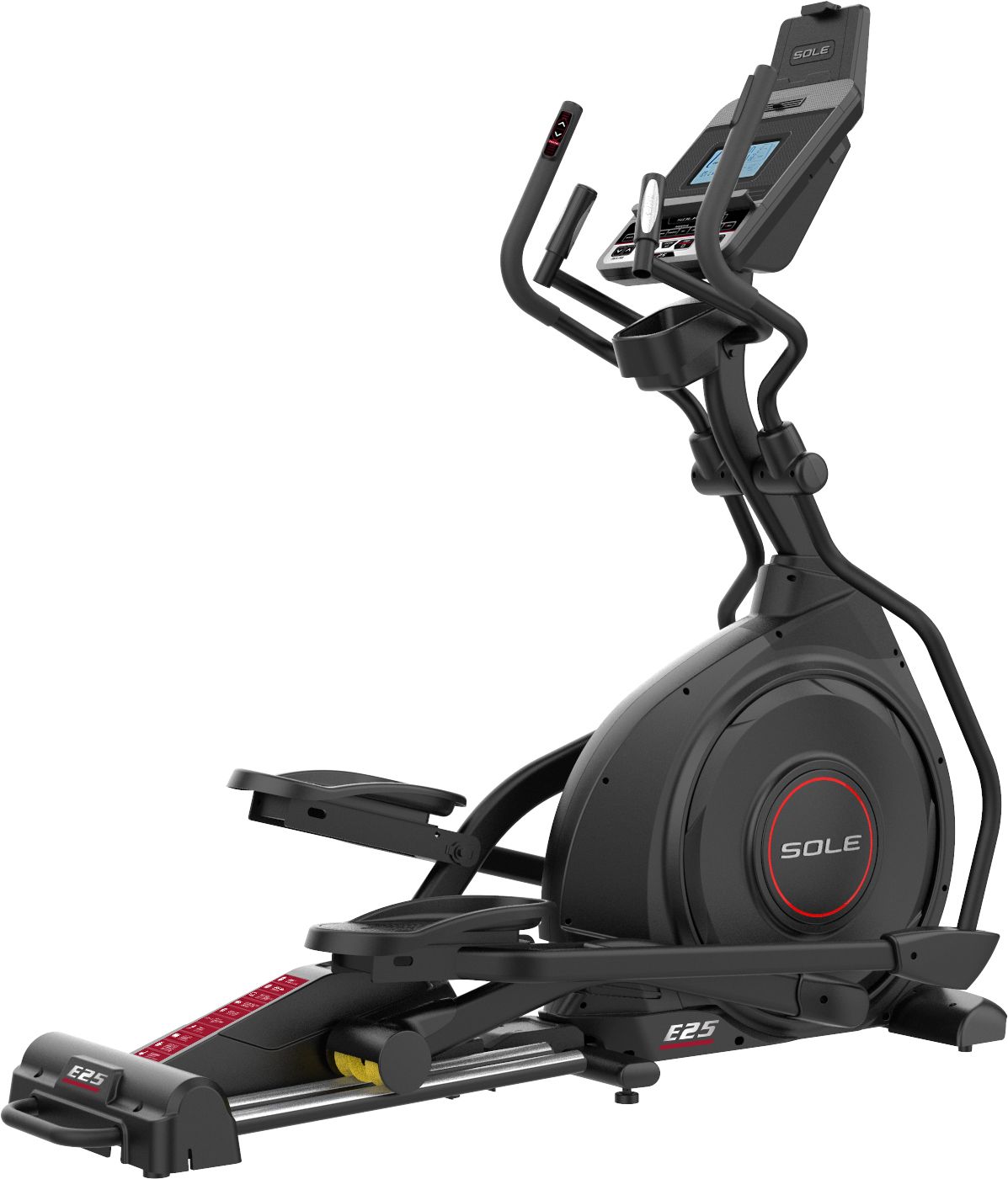 The all new Sole E25 Elliptical sold exclusively at Dick’s Sporting Goods. The brand-new model features a new sleek design an upgraded 7.5” LCD display with connectivity to all Garmin devices. The E25 keeps its solid 15-year pedigree with power incline, articulating pedals, pulse grip HR and an incredibly smooth feel.