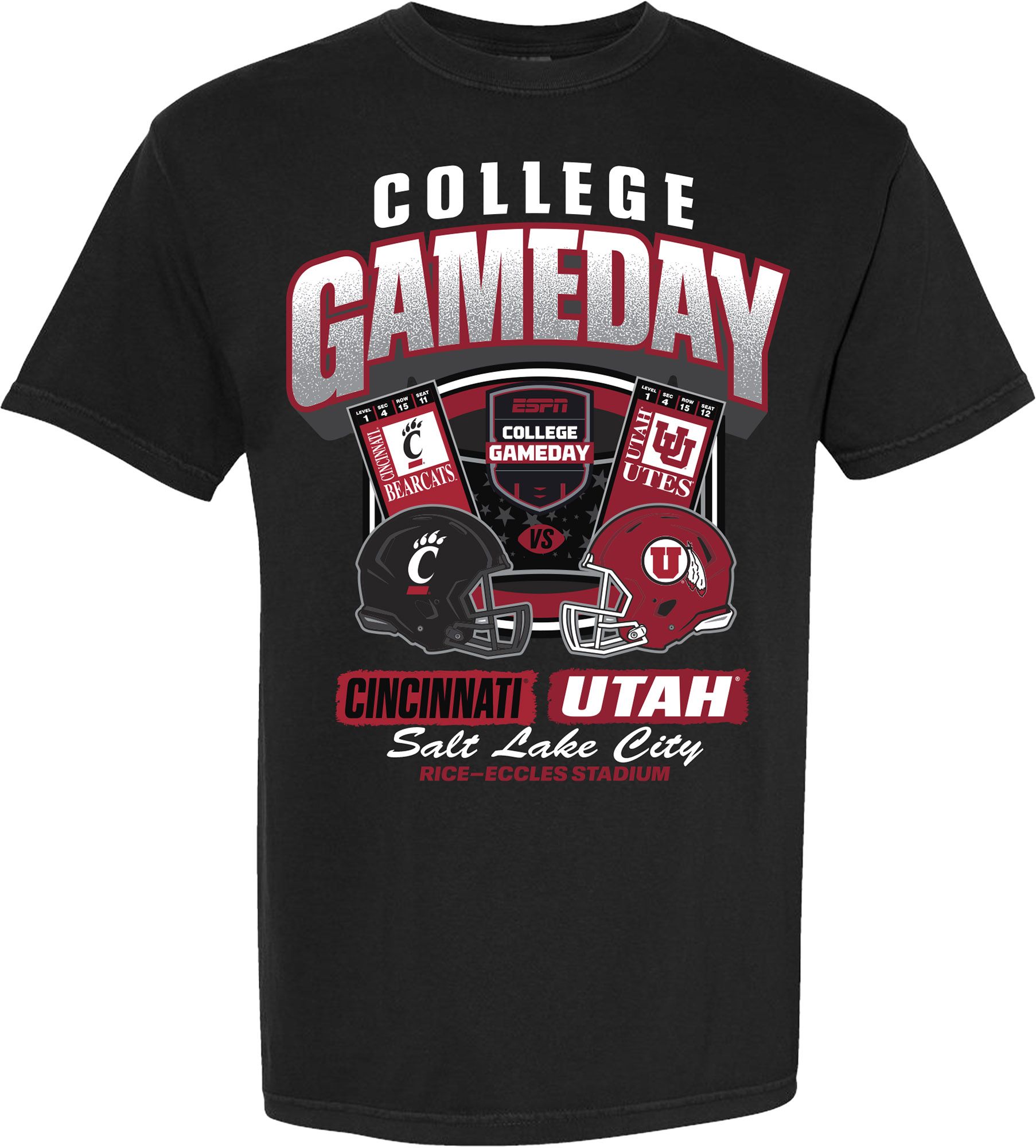Something Inked Adult Utah Utes VS. Cincinnati Bearcats College GameDay Black T-Shirt