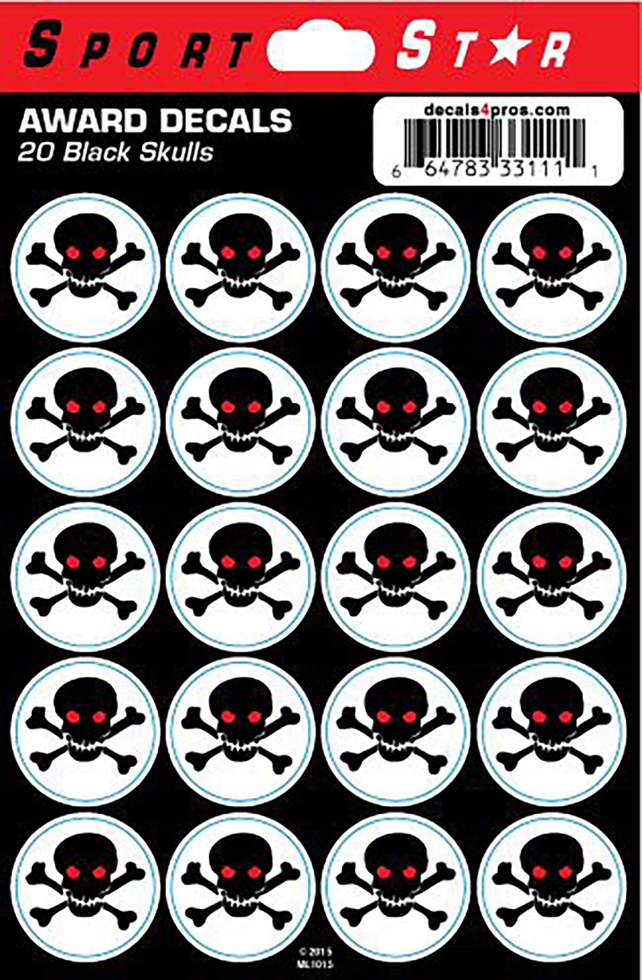 One of our most popular awards; these black skulls stand out on light colored helmets and look quite fierce and aggressive! Printed on durable vinyl with a clear overlaminate for long lasting good looks and easy application/removal. Works on any color helmet - the outline is the secret!