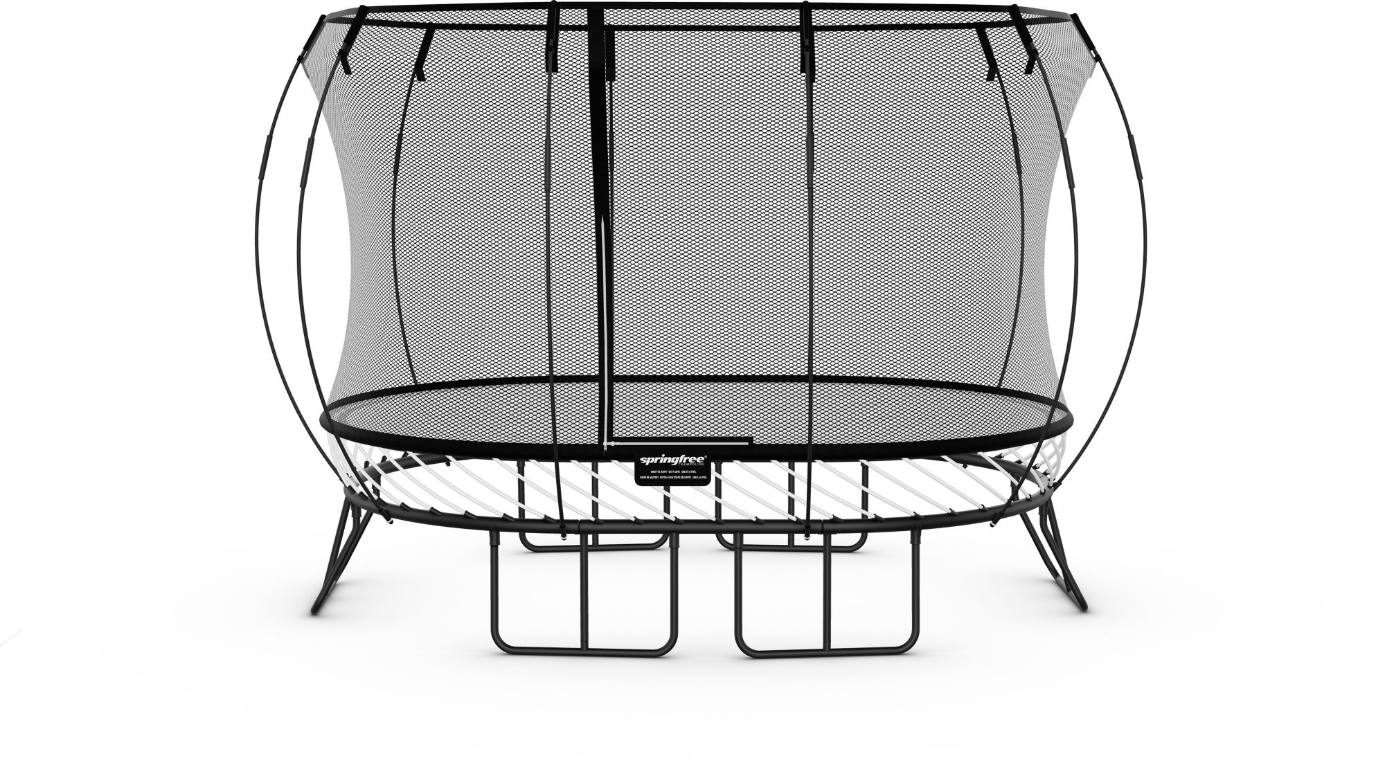 The Springfree Trampoline 8’ x 11’ Medium Oval Trampoline creates a safe outdoor play space for the entire family. This springless trampoline features a high-strength flexible frame with flexible composite rods, the SoftEdge Mat for optimal shock absorption, and the FlexiNet Enclosure for maximum cushion and safety. By eliminating springs, exposed framing, and steel poles, the Springfree Trampoline makes it safer for your kids to play.