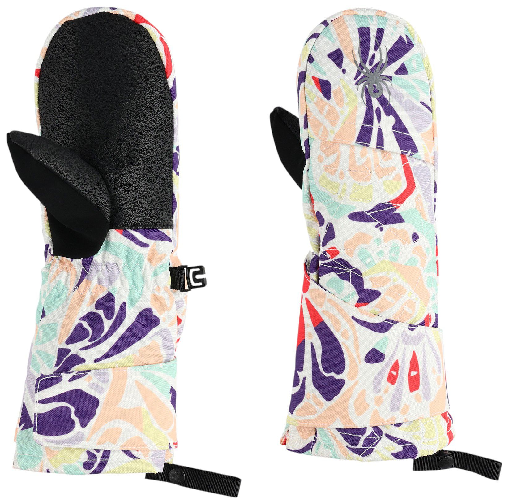 The Cubby Ski Mittens are built with EXO SHIELD 10K/10k recycled fabric and PrimaLoft® Silver Eco Insulation (100g ). They are equipped with a heat pack pocket and adjustable wrist strap. The leash lets you connect the mittens to the small loop on their Spyder jacket, ensuring you won't have to chase down dropped mittens.