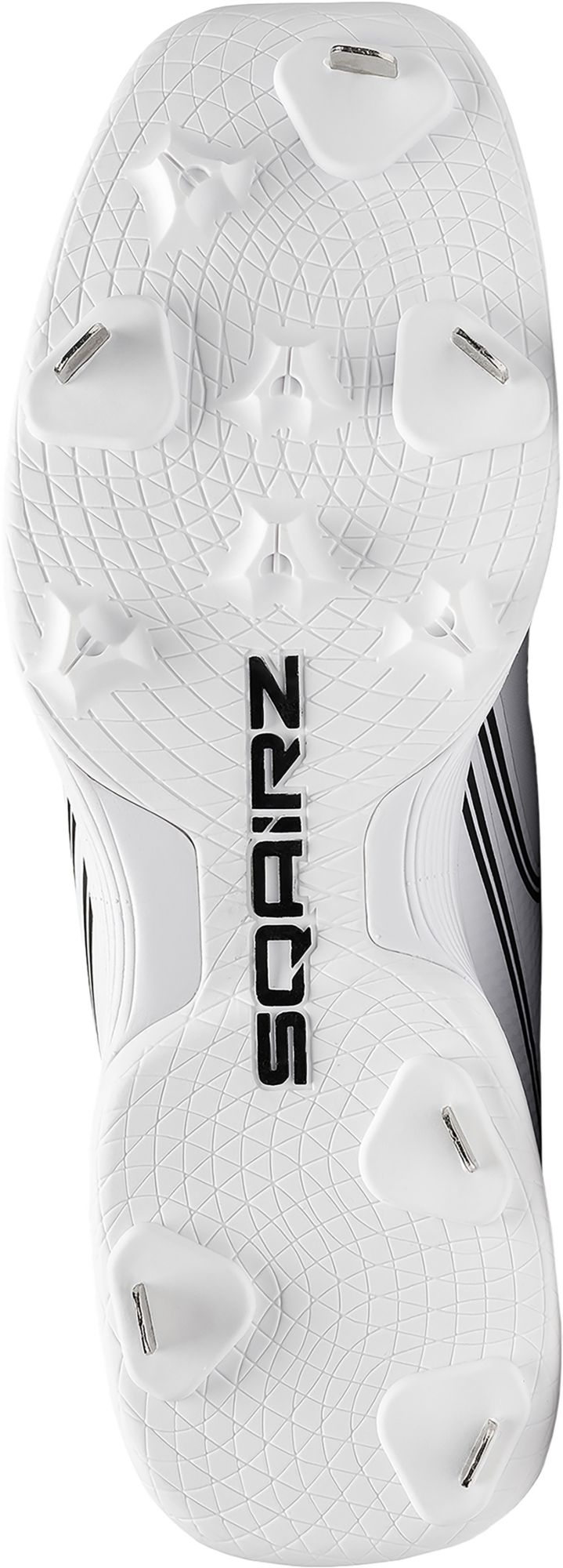 Patented Smart Traction metal spikes are optimally positioned for competitive play, with tall outer spikes for traction and stability, angled spikes for grip, and smaller rubber cleats in the middle creating a Power Channel for forefoot stability and ground connection