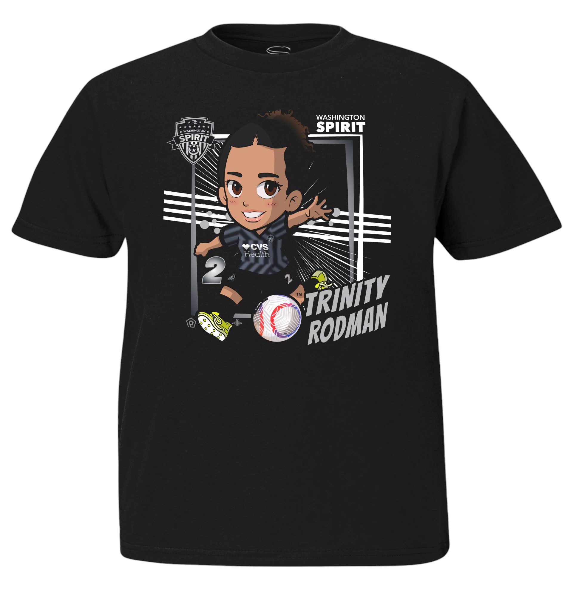 Stadium Essentials Youth Washington Spirit Trinity Rodman #2 Chibi Black T-Shirt