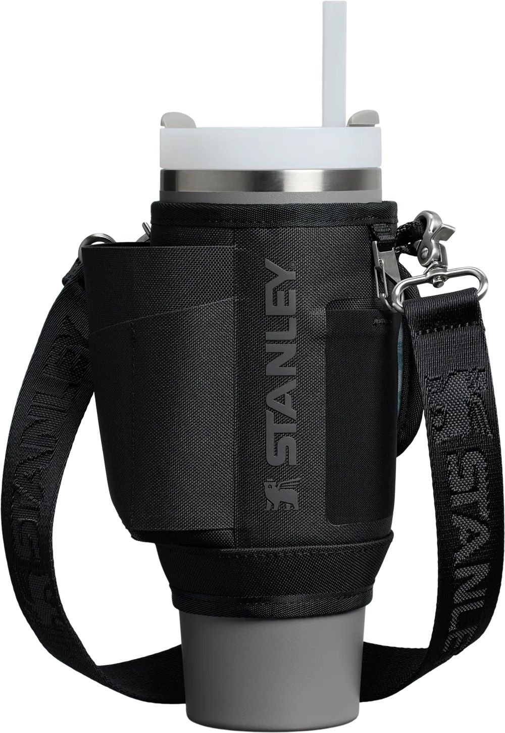 Welcome to hands-free hydration—with pockets! Made of 100% recycled polyester, style meets function in a vivid array of colors. Keep the All Day 30 oz. Quencher Carry-All by your side to meet your hydration goals. Wrap the band, lined with a winged bear pattern, around your 30-ounce Quencher and secure with the double snap closure. Sling the strap across your body, hold onto your loved ones and have fun. With three pockets, one is spacious enough to hold your phone while the second pocket below stores a slim wallet or card sleeve. A smaller mesh pocket holds compact headphones, lip balm, or the small extras you can’t live without. Thoughtful design means a dedicated sleeve to hold onto your sunglasses. There’s even a clip for your keys! Detach the strap and swap colors with your best friend. Wherever the good times take you, move freely and stay hydrated with Stanley.