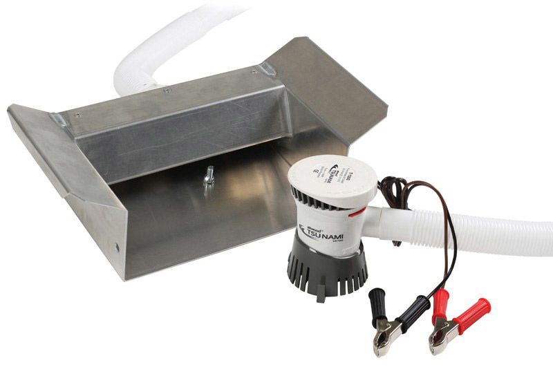 When moving water is not available, turn to the Stansport™ Recirculating Header for Sluice Box. An aluminum header and submersible sump pump complement your Stansport™ Self-Locking Sluice Box, and is battery-operated. This header is only compatible with the Stansport™ Self-Locking Sluice Box.
