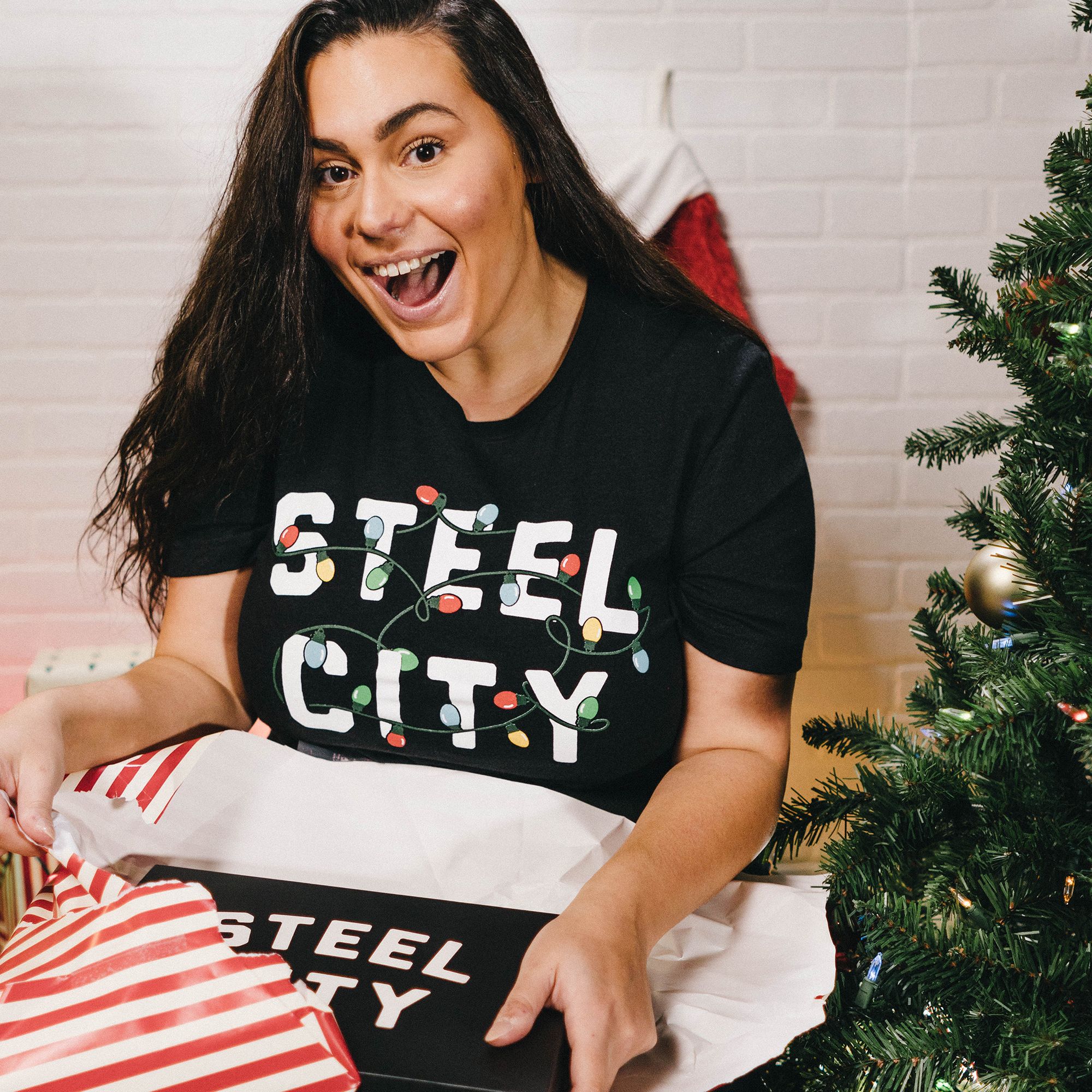 Steel City Adult Pittsburgh Black Logo Lights T-Shirt